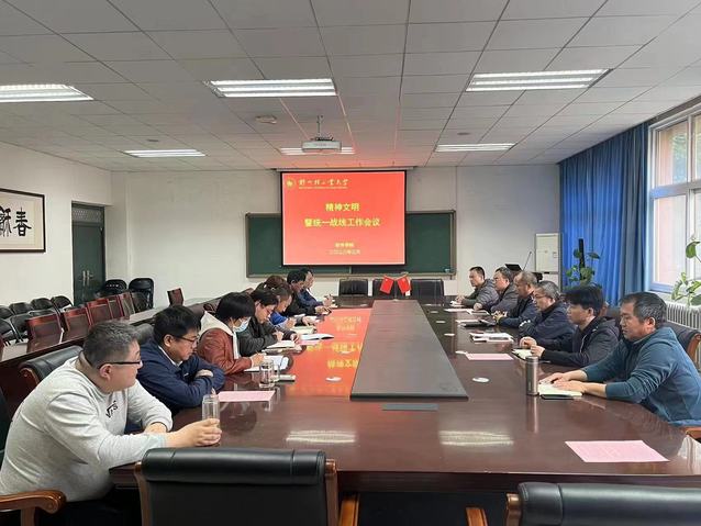 武丰龙传达了学校2023年工作要点,介绍了学院年度党建思政工作计划,并就做好学院思想政治、精神文明和统一战线工作工作提出要求。一是要提高政治站位,持续深化理论武装,巩固共同思想基础;二是要坚持守正创新,积极妥善回应师生关切,提升思想政治工作质量;三是要树牢底线思维,巩固意识形态防线,守好意识形态阵地;四是要深化文明校园创建,努力打造学院文化,大力弘扬时代风尚;五是要突出主责主业,加强新闻舆论引导,持续讲好学院故事;六是要凝聚多方合力,强化民族宗教工作,有效发挥统战作用。