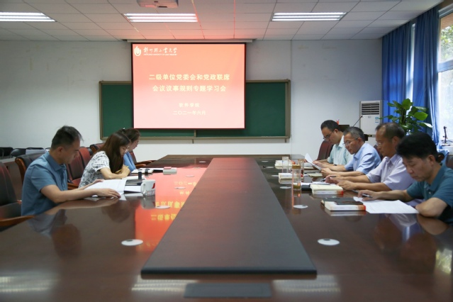 6月23日上午,软件学院在软件楼210会议室召开二级单位党委会和党政联席会议议事规则专题学习会。学院领导班子成员、党政办主任参加了学习会,会议由学院党委书记武丰龙主持。