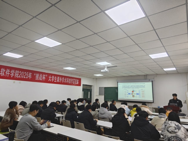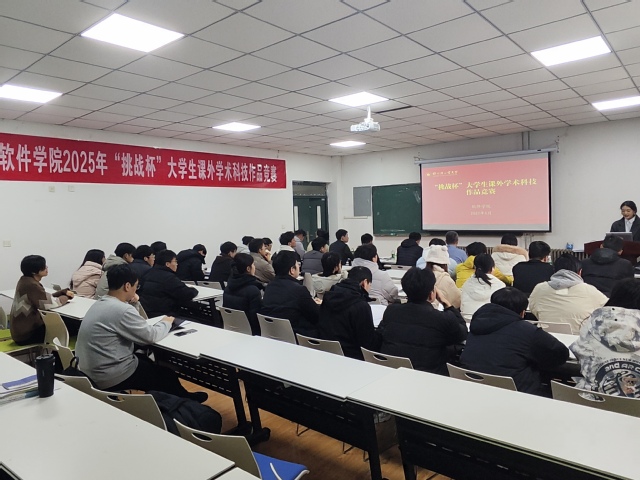 为提高大学生创新创业兴趣,培养学子动手实践能力,遴选校赛优秀参赛作品,1月2日下午,软件学院在软件楼112室举办2025年 “挑战杯”大学生课外学术科技作品院级赛。