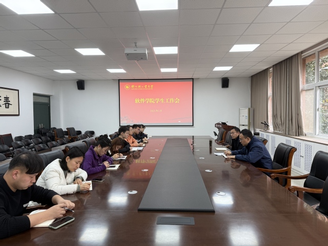3月5日,软件学院在软件楼210会议室召开学生工作会议,学院党委书记武丰龙、副书记马欢、全体辅导员参加本次会议。