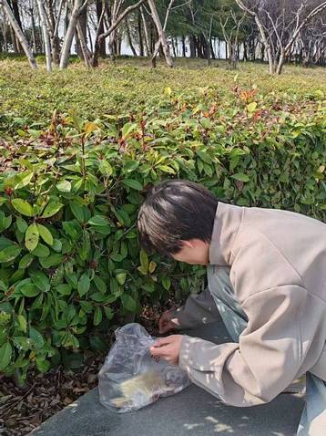 活动当天,志愿者携带垃圾钳、环保袋等工具,分组沿河道展开地毯式清理。志愿者们细致捡拾散落的塑料瓶、烟头、包装袋等垃圾,并对发现的卫生死角进行重点整治。针对可回收物,现场进行分拣归类,统一送至回收站,实现资源循环利用。参与的同学纷纷表示:“亲手让河岸恢复整洁,真切体会到环保责任,未来会从点滴做起,带动更多人加入生态保护行列”。