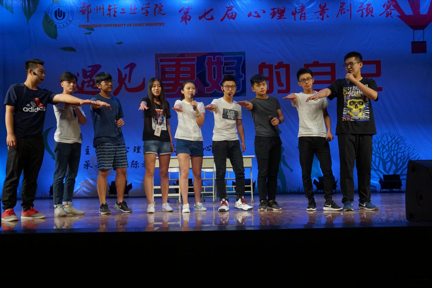 各学院及大学生心理协会18支队伍参与了此次比赛。演员们或机智幽默、或深情倾述,以极富感染力的艺术表现手法和新颖独特的视角诠释亲情、友情、爱情的含义,生动展现了发生在宿舍、班级、校园内的大学轶事,给现场的评委和观众留下了深刻的印象,充分展现了我校学生朝气蓬勃、奋发向上的精神风貌。经过激烈角逐,《追梦轻院赤子心》(国际教育学院)、《我和情绪有个约束》(机电工程学院)、《主动权》(艺术设计学院)、《超人不会飞》(计算机与通信工程学院)、《醒悟》(材料与化学工程学院)和《珍惜》(食品与生物工程学院)晋级决赛。