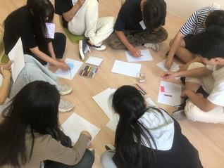 第二阶段以“自我肯定”为主题。通过“坐地而起”“心有千千结”等热身活动,让同学们感受到了团队的支持与合作的力量;在“滔滔不绝”环节,成员们用全新的视角思考了他人眼中的自己;随后,成员们在正念冥想中放松下来,通过观察、触摸橘子的纹理,每个人都找到了自己的橘子,引导大家自我肯定,发现自己的独特之处。