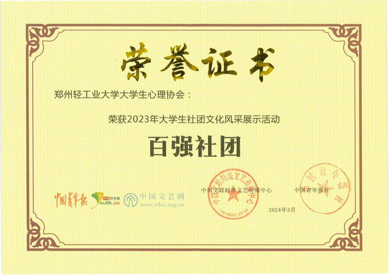 近日,中国文艺网和中国青年网发布《2023年大学生社团文化风采展示活动通报》,我校大学生心理协会入选“大学生社团文化风采展示活动百强社团”,心理健康教育中心教师谢杏利获评“优秀指导教师”,我校荣获“优秀组织单位”。