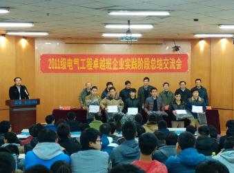 12月11日19:00,电气信息工程学院在教三楼103召开2011级卓越班企业实习阶段总结交流会。学校教务处、就业指导中心负责人,学院党政领导班子成员,卓越班各年级及2014级电气工程专业学生参加会议,会议由电气工程及其自动化系主任金楠主持。