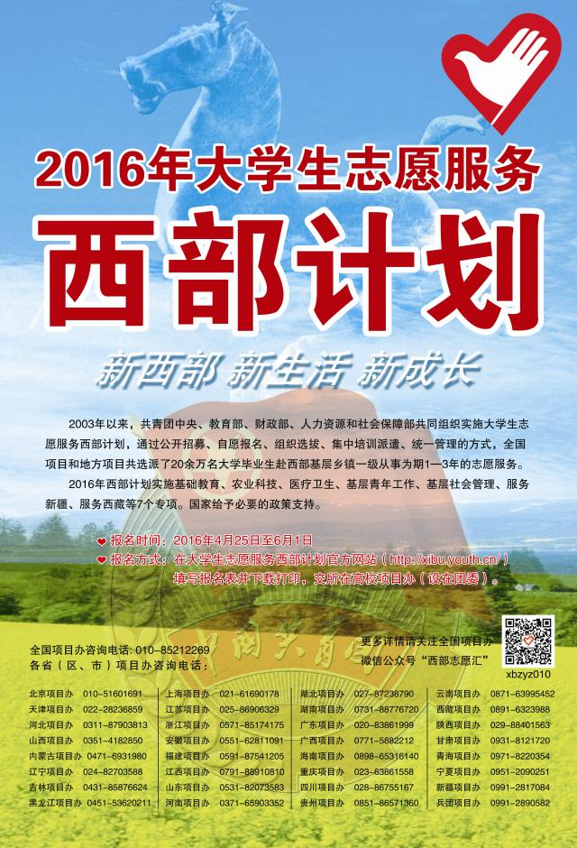 根据河南省大学生志愿服务计划领导小组项目管理办公室通知,全国大学生志愿服务西部计划和河南省大学生志愿服务贫困县计划于4月25式启动,现将相关工作的具体事项通知如下: