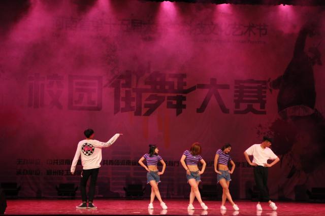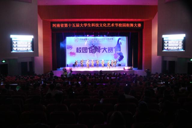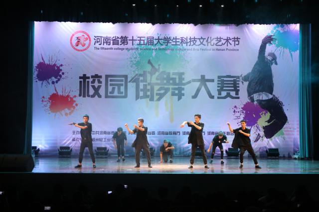 5月13—15日,我校承办的河南省第十五届大学生科技文化艺术节校园街舞大赛在东风校区隆重举行。包括我校在内共有全省60所高校、81支队伍、500余名大学生在这里舞动青春,展示风采。比赛分为流行街舞和健身街舞两大组别。我校大学生街舞队顽强拼搏,取得了优异成绩。