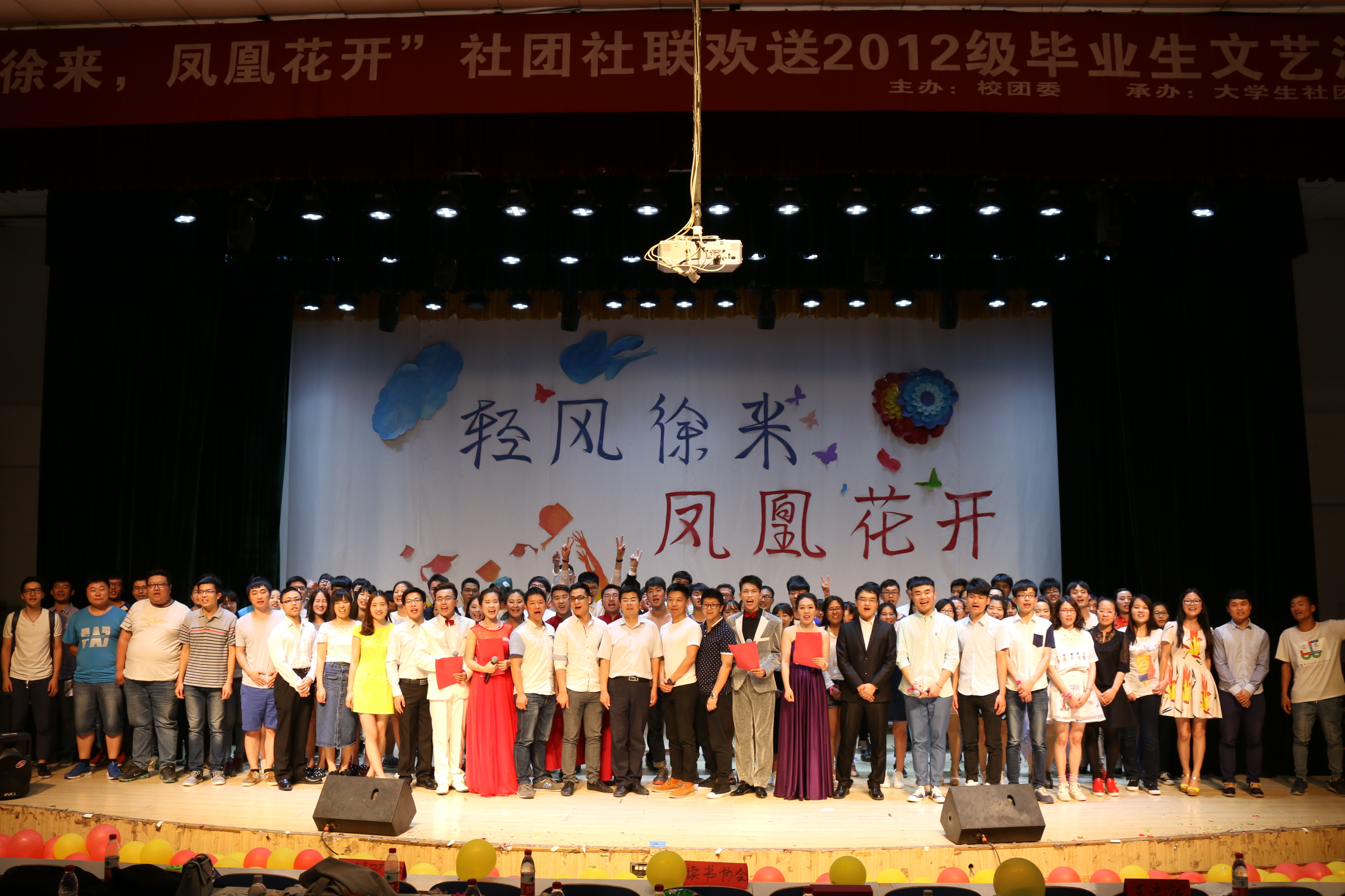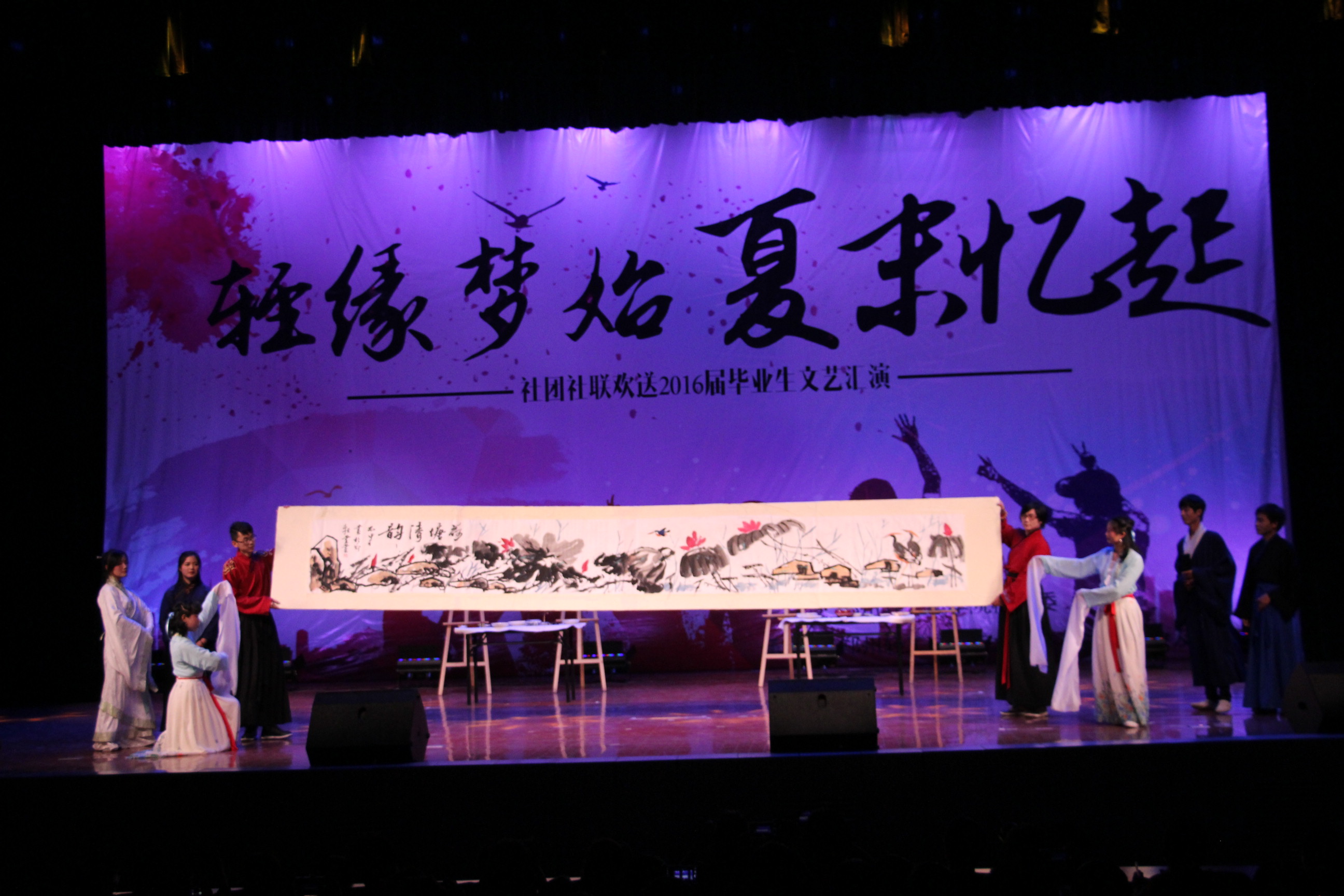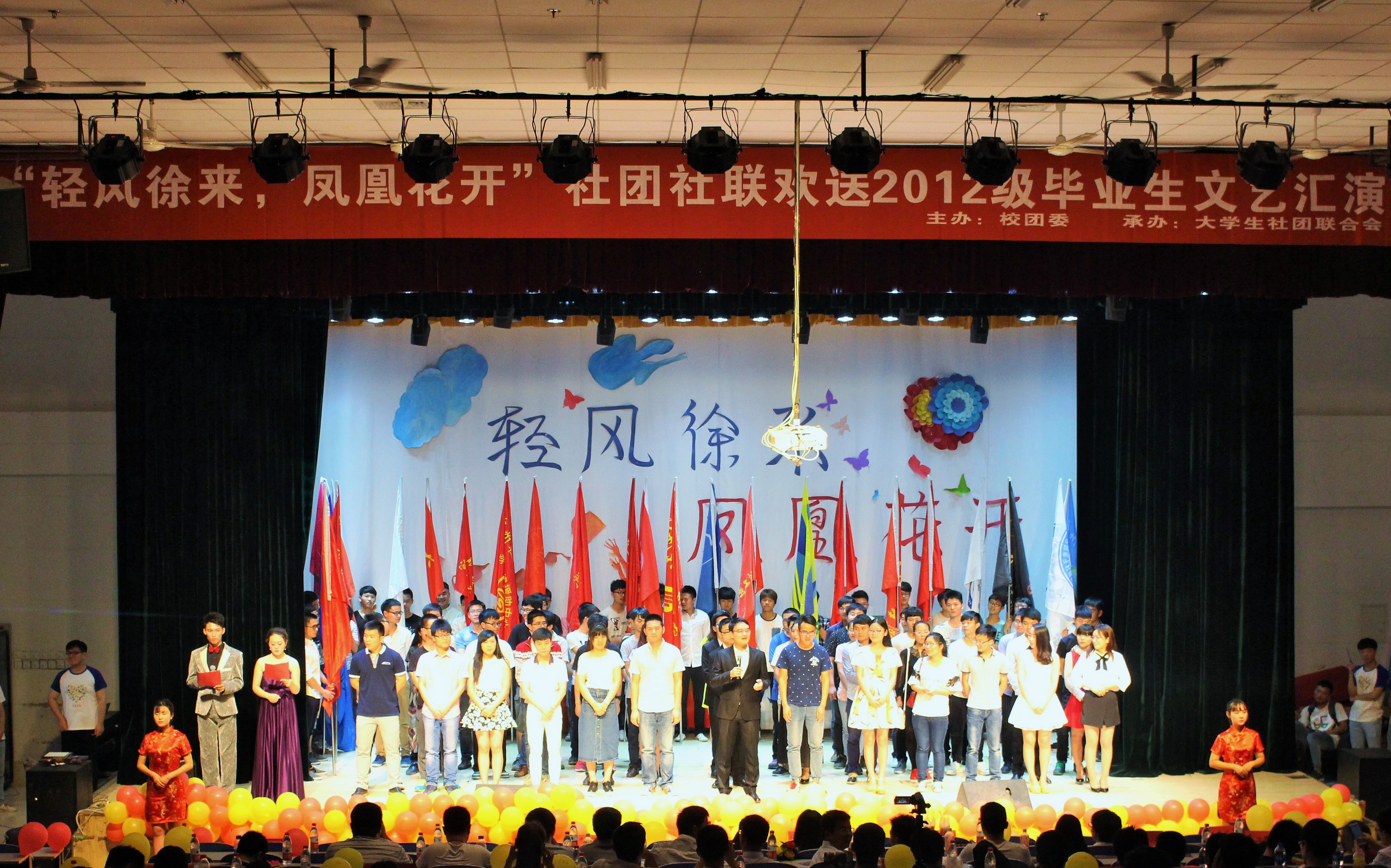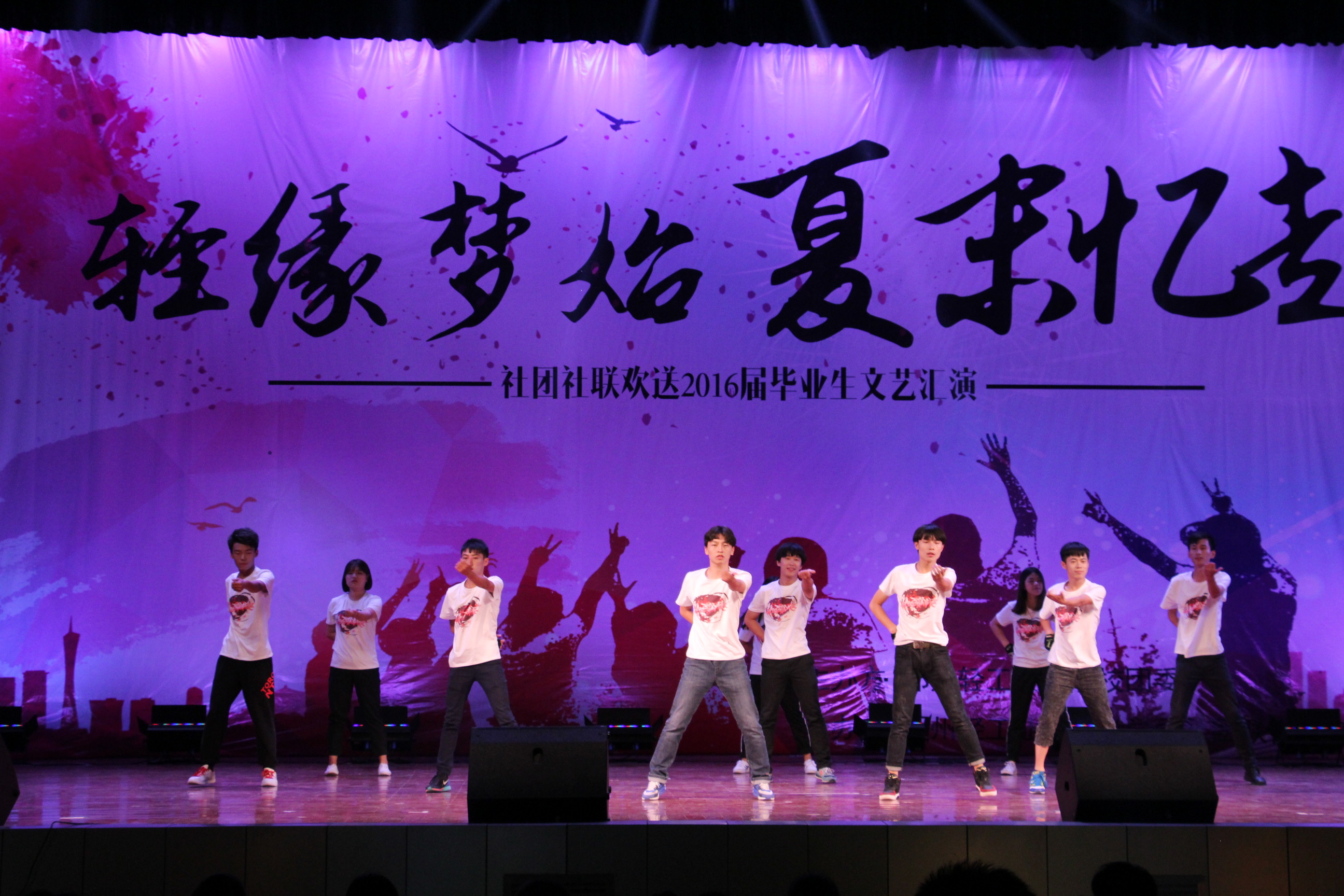 送毕业生文艺汇演是我校学生社团校园活动的传统项目,晚会的成功举办,不仅让毕业生们感受到了校园内的温情,在离别的时刻不再只有依依惜别,还能有更多的喜悦与希望,也让他们再次感受到社团社联这个大家庭的温暖,进一步深化了母校情、师生情和同学情,表达了社团社联对2016届全体毕业生的美好祝愿,祝愿毕业生们在离别母校、踏入社会这个更广阔的天地后能够畅快翱翔、振翅高飞。