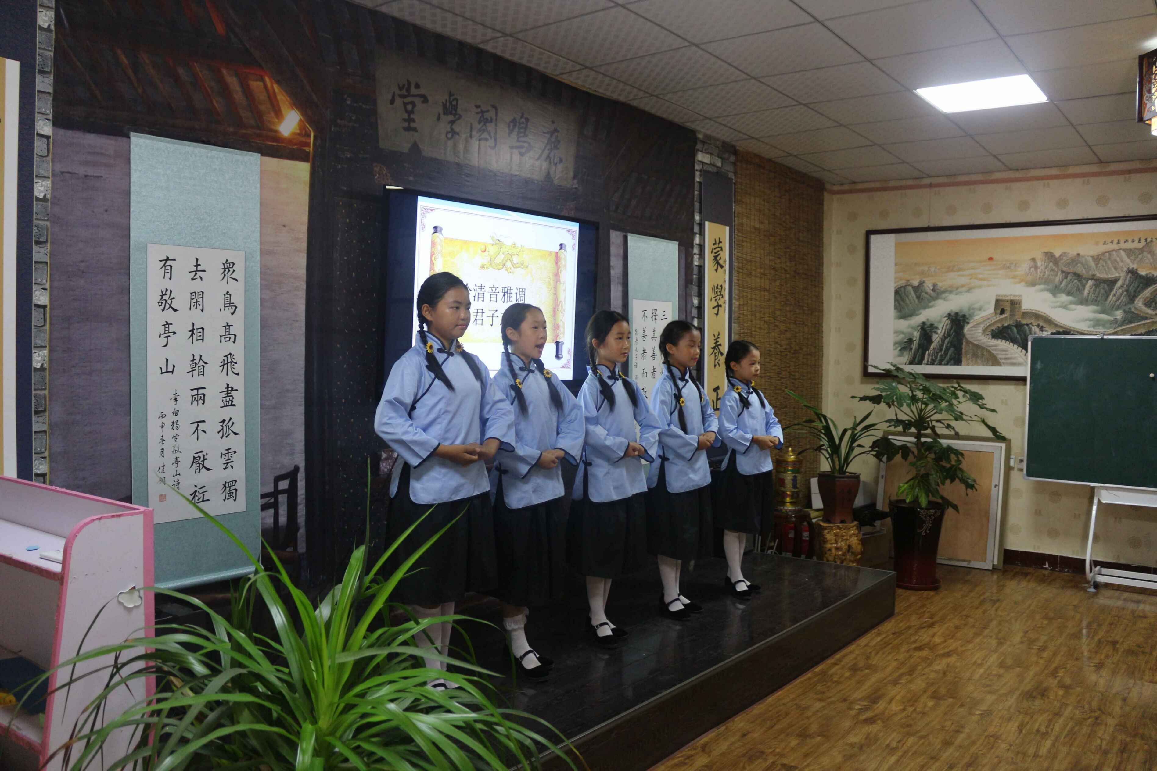 7月11日上午,调研小分队抵达濮阳市鹿鸣国学堂,与濮阳市多所中小学师生进行交流。交流过程中,濮阳市的小学生吟诵的《八阵图》、《赠汪伦》等诗歌,时而高昂、时而沉郁,充分表达了作者的真情实感、意蕴哲思,展示了华调吟诵之美。交流过后,河南省吟诵学会副秘书长、外国语学院党总支书记杜红亮老师通报了河南省开展吟诵活动的整体情况,勉励在场师生积极探索将吟诵引入课堂教学的途径,总结经验、统计数据,为上级教育决策机构提供依据。外国语学院分团委书记、校吟诵社指导教师刘振卫介绍了我校近年来开展诗词吟诵进校园活动的情况,并分享了自己的感受。濮阳市中小学一线语文教师就吟诵的教学实践、进展情况及效果进行了汇报,在场人员一致认为吟诵是教授古典诗词最有效的方式,应积极倡导在中小学使用吟诵教学的方式。