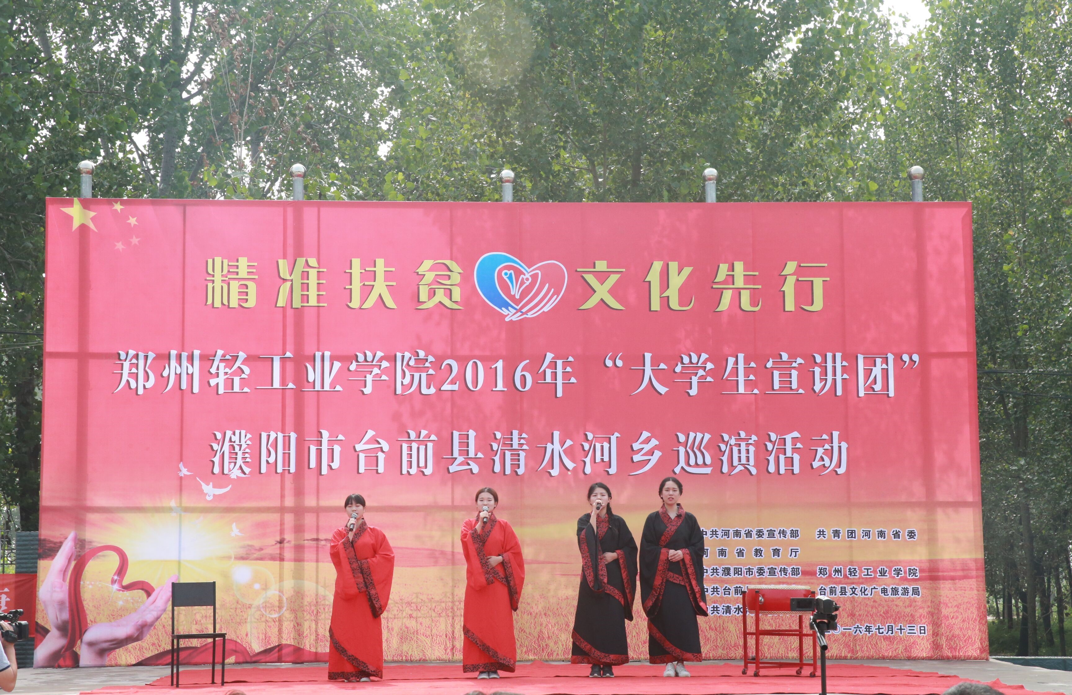 吟诵是一种传统读书方法,被称为非物质文化遗产中的“活化石”,是学习诗词经典的重要手段。此次吟诵服务活动有两个主题,一是以“大学生宣讲团”基层巡演活动为契机,在濮阳市开展经典诗词吟诵展演;二是以理论调研为主线,深入教学一线开展吟诵教育现状调查活动。