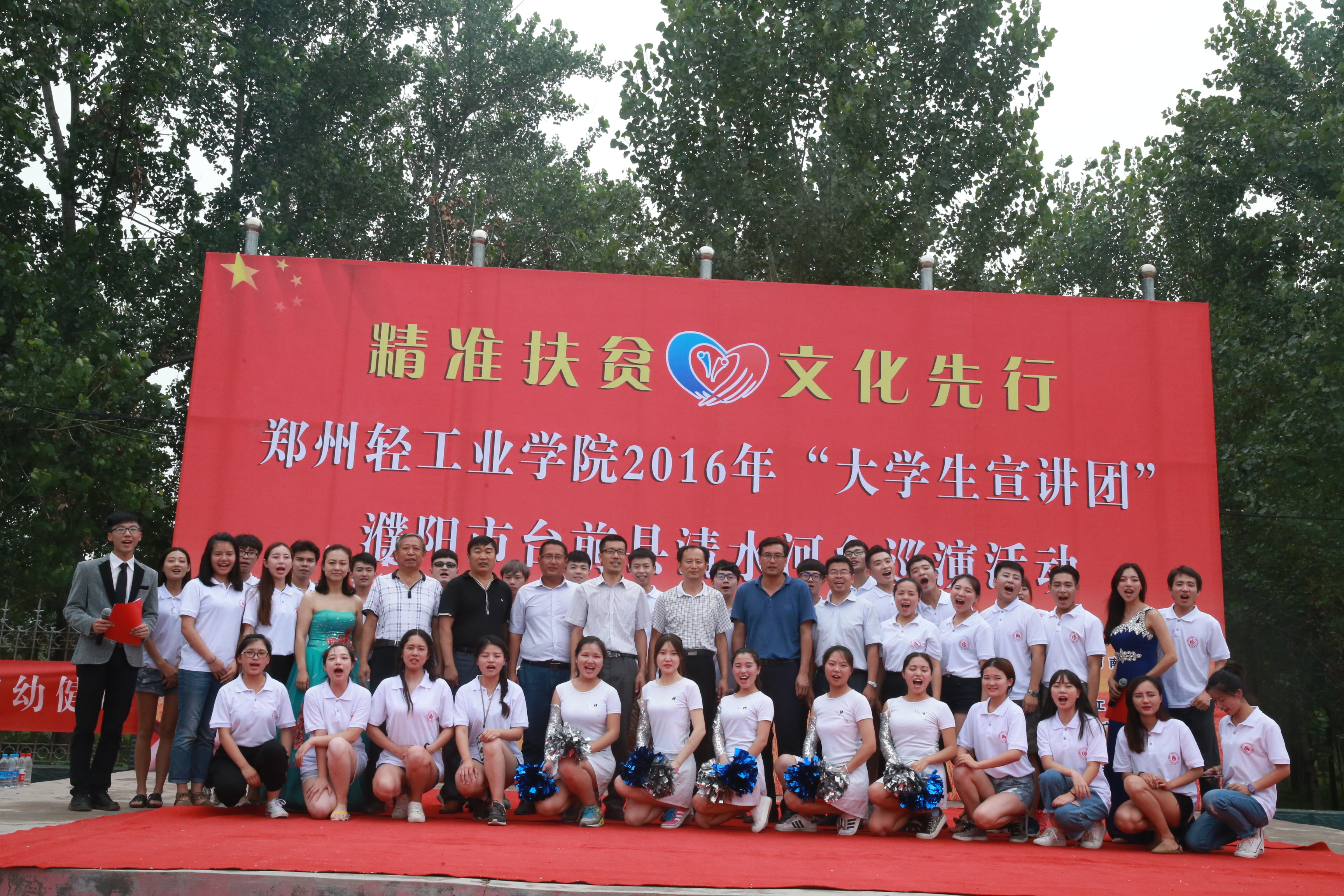 为引导学生党员坚定理想信念,积极投身社会实践,为实现中国梦贡献力量,同时也为了引导广大基层党员把党章党规铭记在心,我校“大学生宣讲团”基层巡回演出文艺小分队于7月10日前往濮阳市开展暑期社会实践活动。