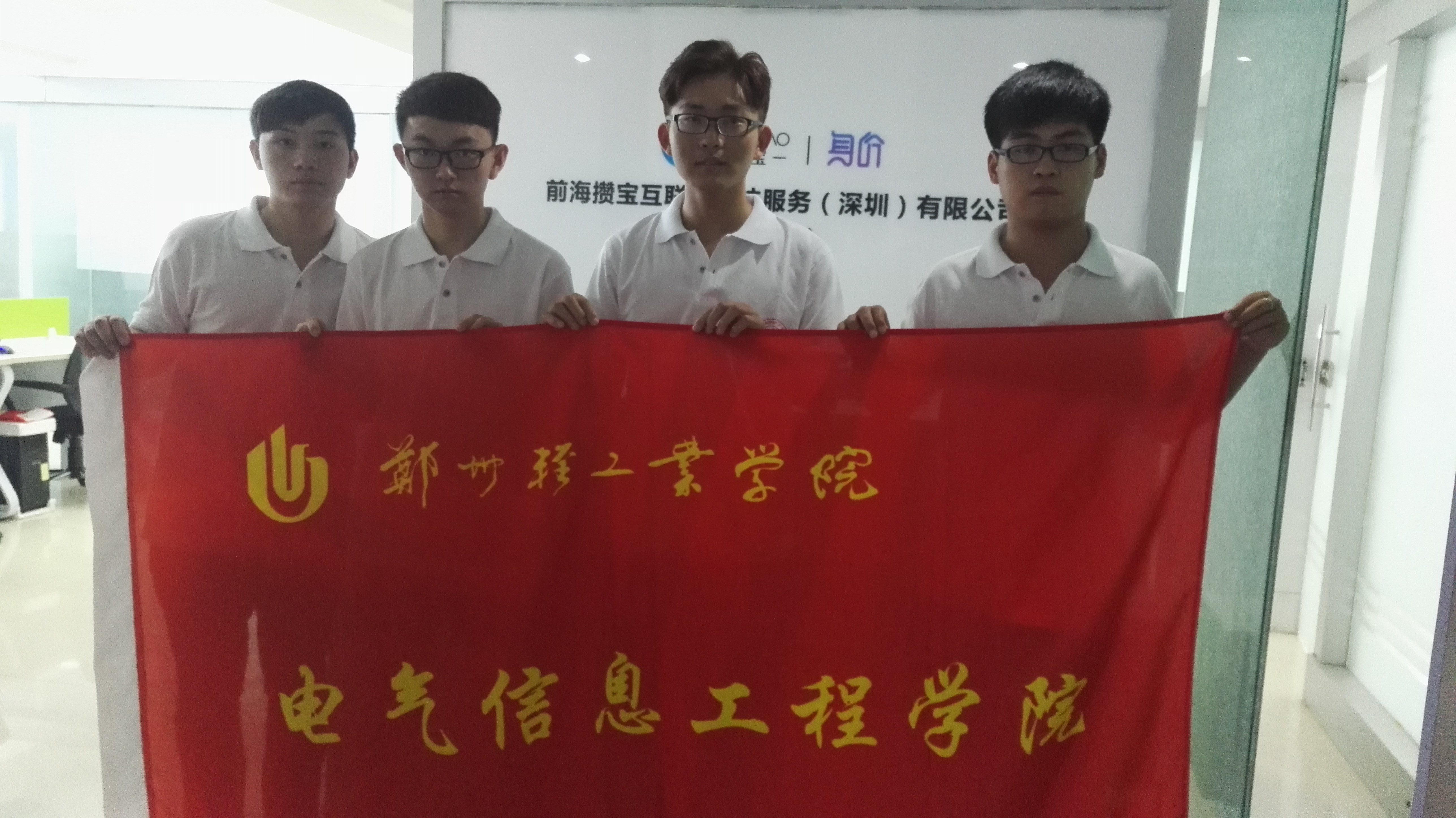 为使大学生了解创业和就业的方向,提高大学生自身素质,引导青年学生投身社会实践,我校电气信息工程学院组建的创新创业实践交流小分队,于7月14日前往郑东新区的前海攒宝互联网科技服务有限公司运营中心开展暑期社会实践活动。