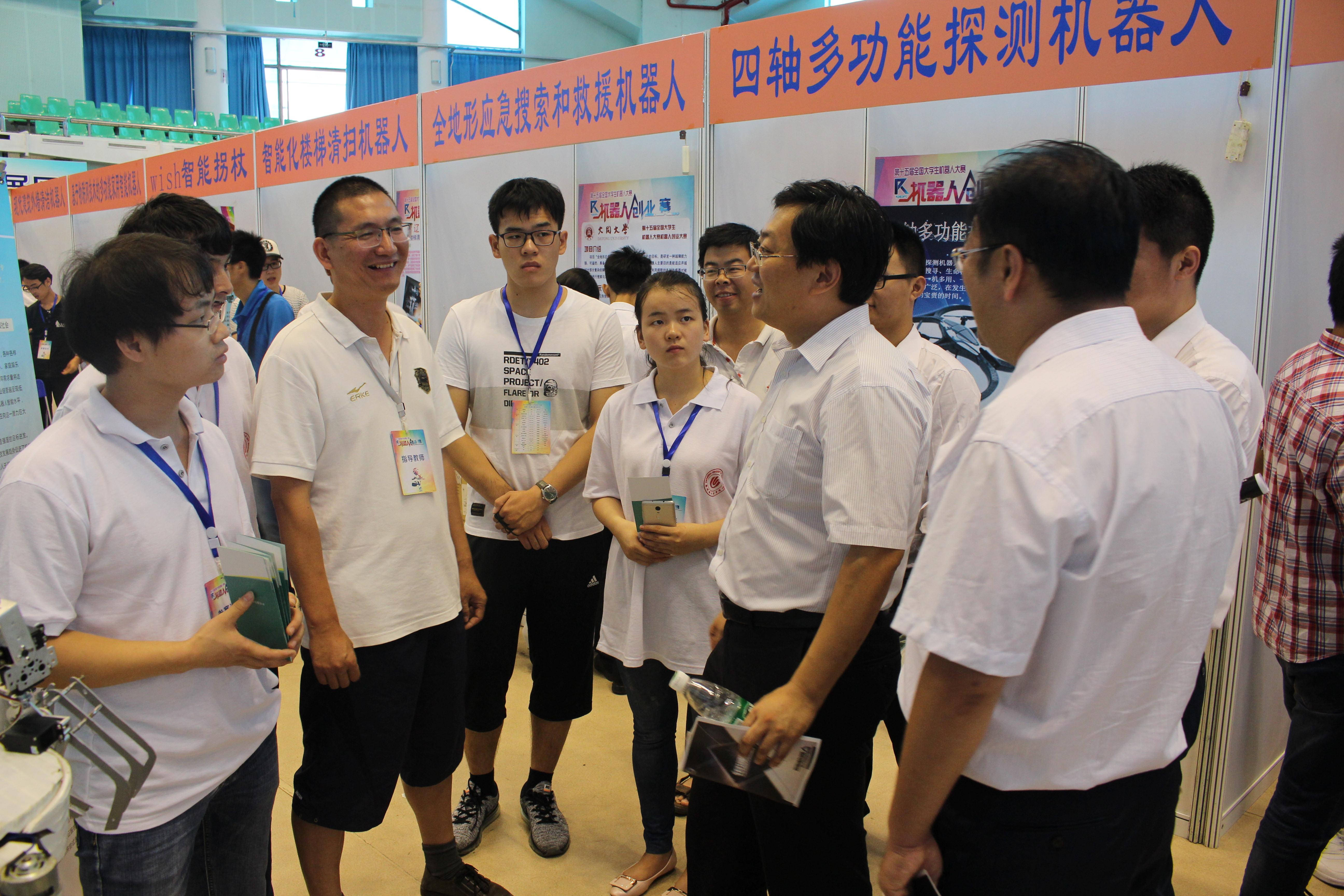 大赛由共青团中央、全国学联主办,哈尔滨工业大学、黑龙江团省委承办。大赛涵盖工业机器人、服务机器人、教育机器人、特殊领域专用机器人等,集中展现了全国大学生机器人领域的创新创业水平。大赛下设创业实践赛和创业计划赛两个类别,通过预赛,复赛阶段评审,共有23件创业实践类作品和46件创业计划类作品入围最终决赛。河南省共有三个项目入围最终决赛,三个项目全部来自我校电气信息工程学院。经过激烈角逐,我校选派的“工业自动搬运机器人”获得实践组“全国二等奖”,“智能多功能无人机”和“水质监测及水面保洁智能机器人”获得计划组“全国三等奖”,我校等10所高校荣获本次大赛的高校优秀组织奖。全国学联办公室主任柏贞尧,黑龙江省科技厅副厅长石兆辉,共青团黑龙江省委副书记陈凯云,哈尔滨工业大学党委副书记、副校长张洪涛,哈工大机器人集团副总裁王洪波、执行副总裁乔徽和黑龙江省政府相关部门、全国各高校以及投资界代表参加大赛开闭幕式等相关活动。