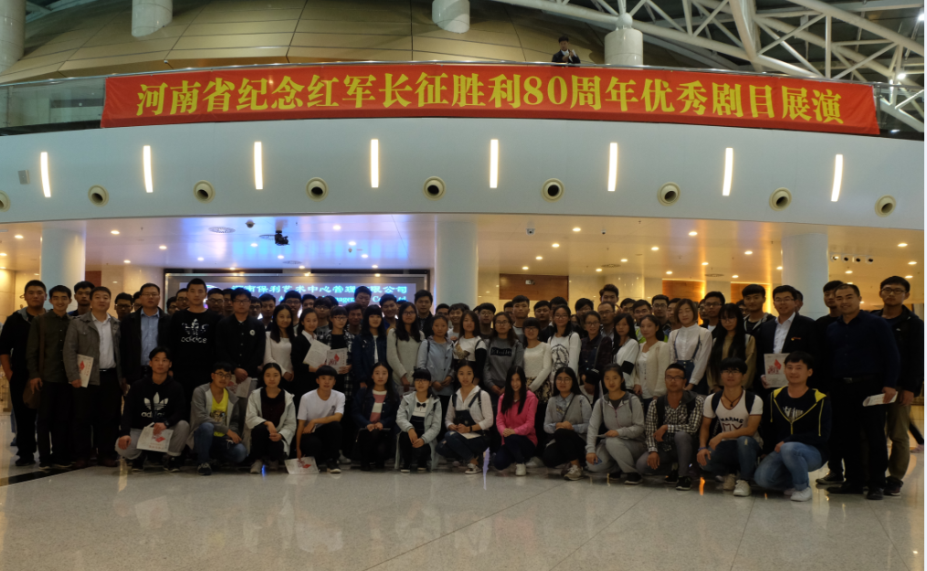 为纪念中国共产党建党95周年、中国工农红军长征胜利80周年、中国人民解放军建军89周年,由中共河南省委宣传部、河南省文化厅主办,(河南省越调艺术保护传承中心)河南省越调剧团、申小梅戏曲学院创作并出演的大型越调史诗剧“飞夺泸定桥”在河南省艺术中心进行巡回演出。为陶冶我校大学生艺术情操,深刻感受红军长征的革命精神,10月18日晚上,校团委组织两校区二级学院学生代表、校级学生组织干部代表近200人前往河南省艺术中心观看了“飞夺泸定桥”展演活动。