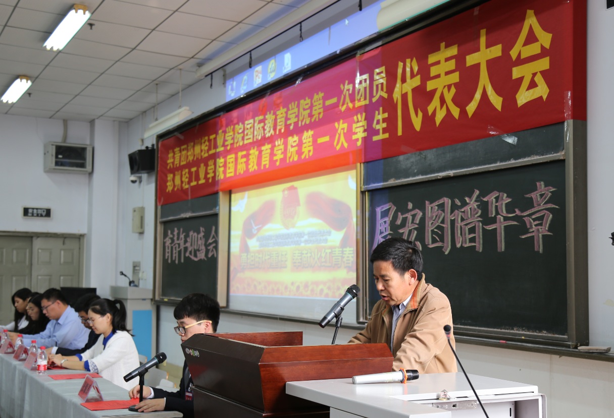 10月18日中午12:50,共青团郑州轻工业学院国际教育学院第一次团员代表大会暨郑州轻工业学院国际教育学院第一次学生代表大会在教三楼205隆重举行。学院党总支书记戚俊清老师、校团委书记葛勋老师、副书记景志勇老师、学院党总支副书记李锐杰老师、分团委书记张瑞凤老师、学院辅导员老师和全体团员代表、学生代表出席会议。会议由学院分团委副书记张耀昂同学主持。