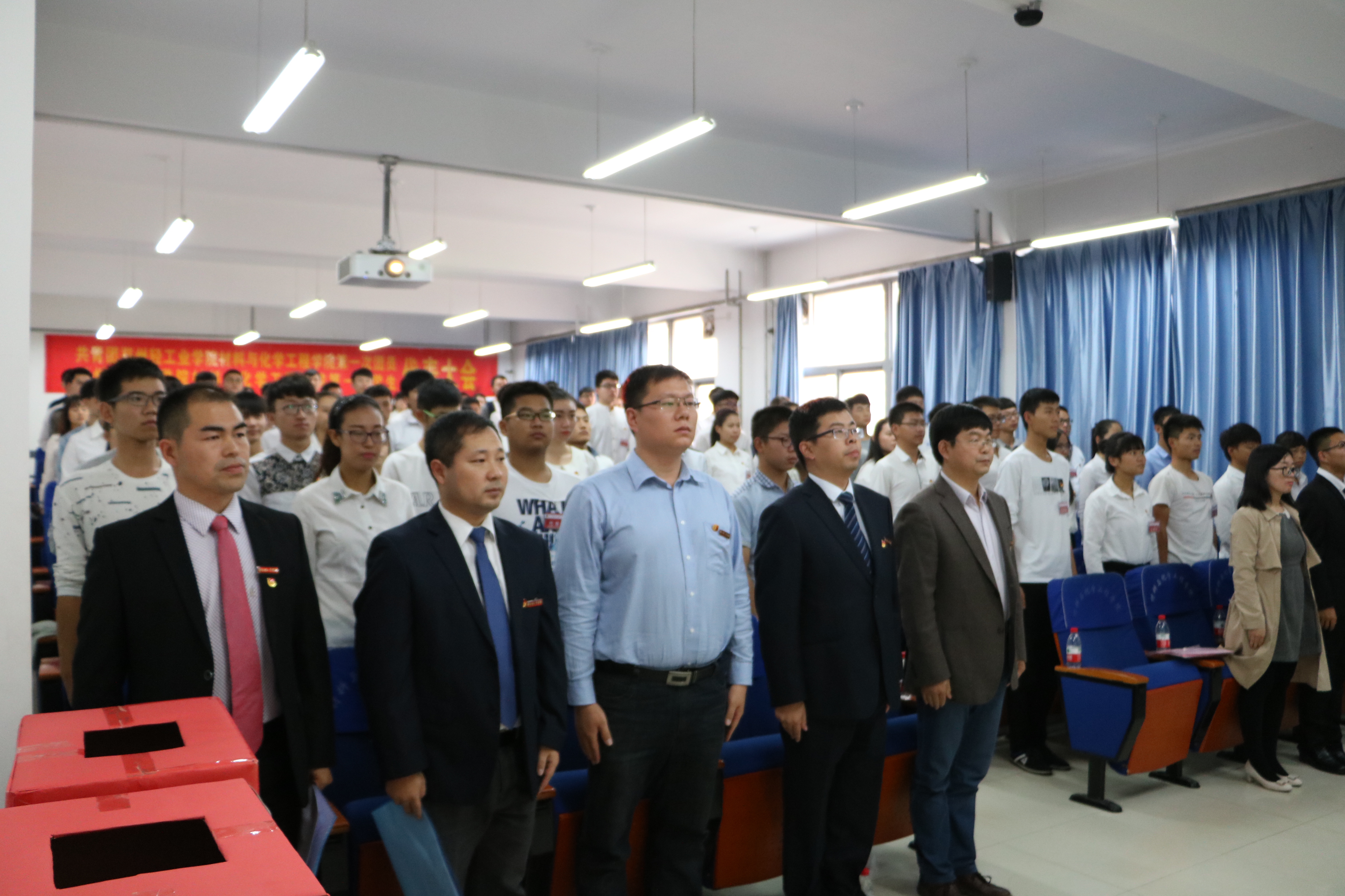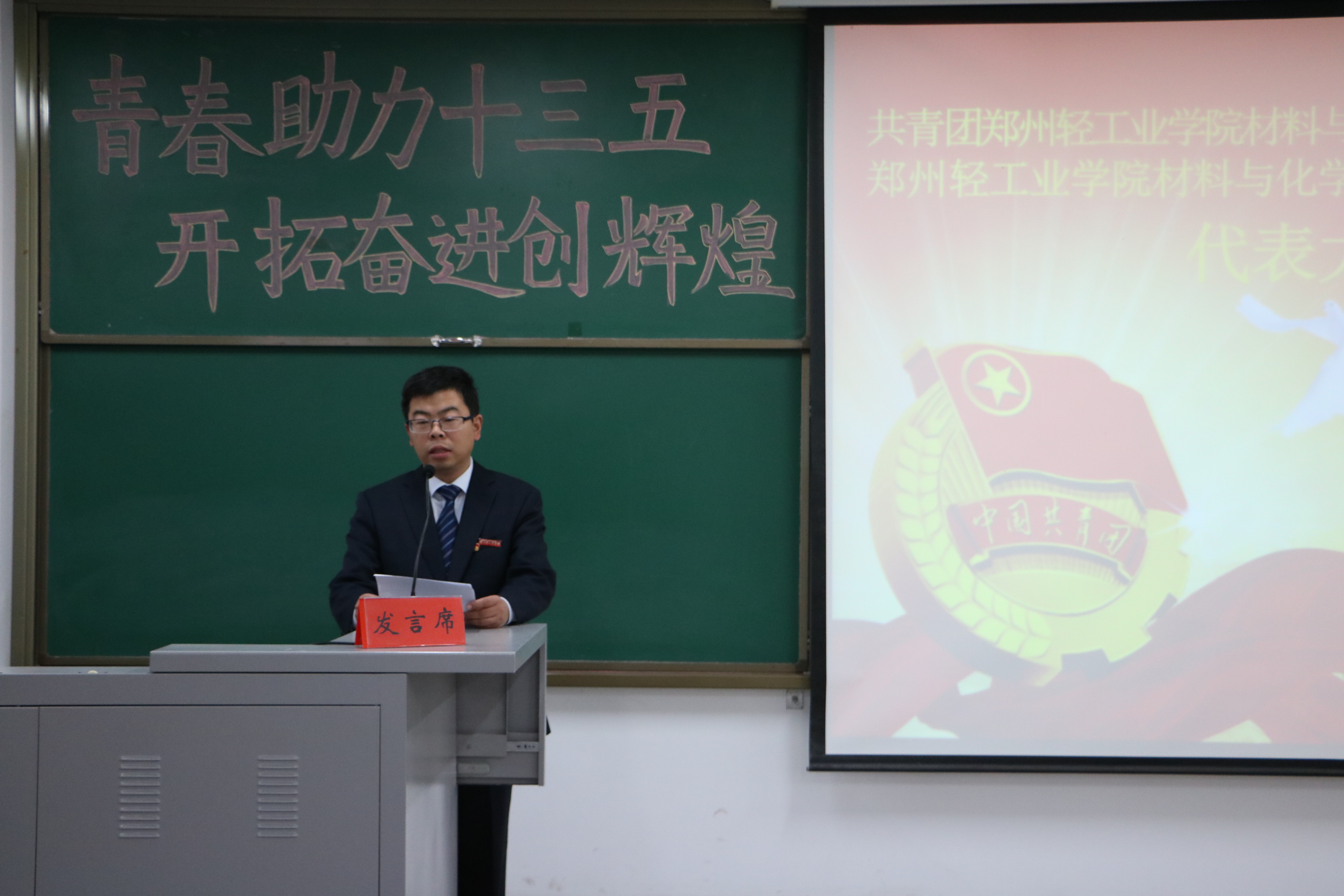 2016年10月19日中午12点,共青团郑州轻工业学院材料与化学工程学院第一次团员代表大会暨郑州轻工业学院材料与化学工程学院第一次学生代表大会于化工楼218隆重召开。学院党总支书记康国磊老师、校团委书记葛勋老师、副书记景志勇老师、学院党总支副书记宋德涛老师、分团委书记朱广正老师和全体团员代表、学生代表参加此次大会。会议由王光霁老师主持。