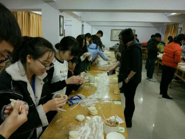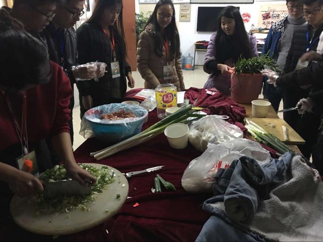本次活动以“同学情”为主题,以团体比赛的形式展开。三人一队,一队一裁判。主要分两个环节展开;比赛包饺子、开心吃饺子。在比赛环节中,这边热火朝天洗韭菜、剥大葱、切姜末,做着准备工作,那边揉面、擀皮、和馅儿、包饺子、烧开水,不一会儿功夫,1000多只饺子形态各异、不同馅料铺满了桌子。同学们都争分夺秒包完指定数目的饺子,由裁判计时并检查是否合格;在吃饺子环节中,一双双眼睛期盼着热气腾腾的饺子出锅了,同学们都觉得亲手包的饺子香,园区同学在一起包的饺子更香。二区的符同学说“饺子象征着团圆,大家围坐在一起吃着热乎乎的饺子,那感觉别提多温馨了”,同学们乐呵呵地吃着饺子,说不出的高兴。同学们包的饺子虽然难看、有些不规范但吃的时候都非常开心。在体验包饺子的同时也体会到同学之间的合作与浓浓友谊。在煮饺子、吃饺子时也体会到后勤食堂工作人员的艰辛。