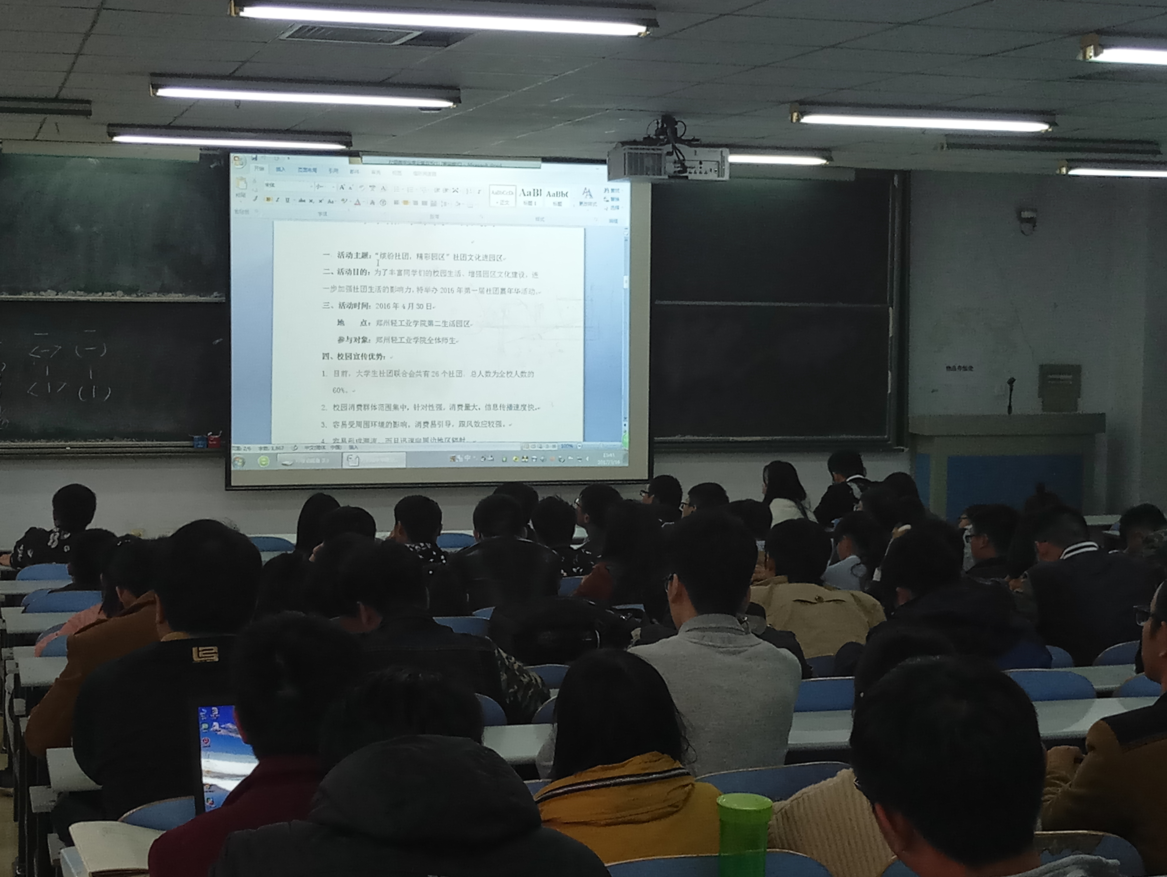 为了进一步提高社联社团干部的理论水平和业务能力,提高社联社团的整体水平。3月16日下午,由校团委主办,大学生社团联合会承办的社联社团干部策划书培训大会在郑州轻工业学院东风校区教三楼104拉开帷幕。本次培训由大学生社团联合会副主席郑继标为大家进行讲解。参加此次培训大会的是社联社团所有干部。