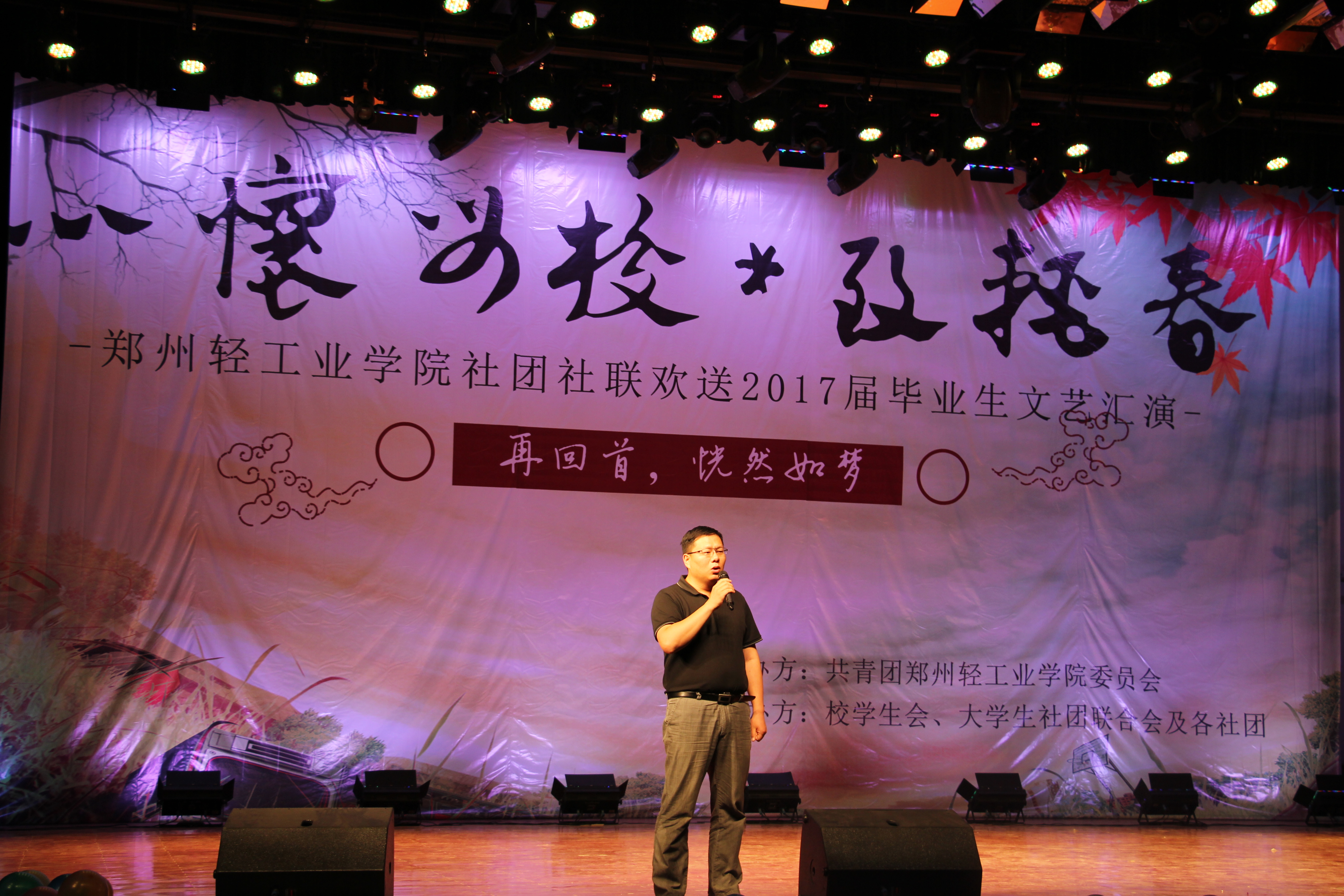 5月13日下午,在校团委的具体指导支持下,校学生会、大学生社团联合会及各社团承办的以“心怀母校,致轻春”为主题的欢送2017届毕业生文艺汇演(东风校区)在学校礼堂成功举办,校团委副书记景志勇老师及社团社联13级毕业生受邀到场参加“送毕业生主题仪式教育”。本次活动引起了校内外的广泛关注,现场观众超过了1200人,微博直播观看量高达3614人次。活动期间,观众积极参与微博“忆往轻深”话题互动,截止发稿日当晚,微博话题阅读量高达83.7万,参与话题讨论6732条,话题讨论热度一度飙升至教育榜单第1名,总榜单第12名。