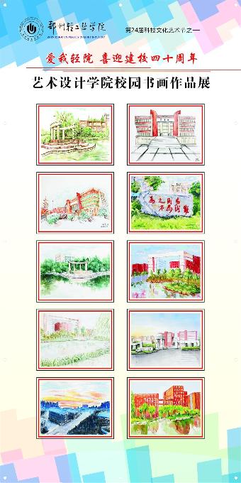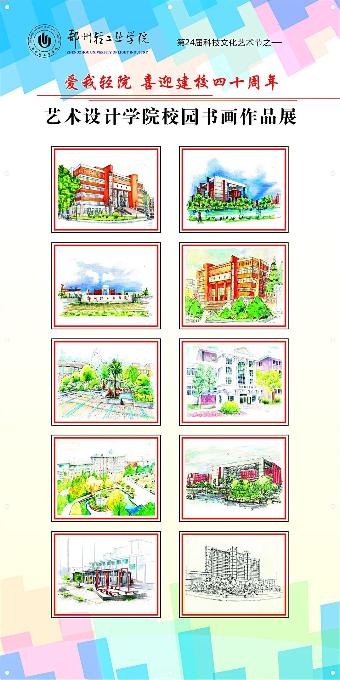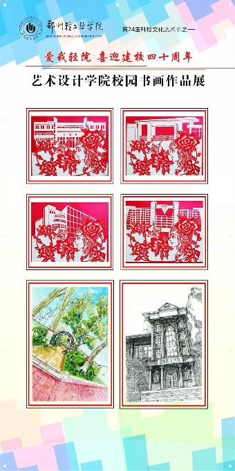 此次展览以“爱我轻院,喜迎建校40周年”为主题,由党委宣传部、学工部(处)、校团委主办,艺术设计学院分团委承办,是我校第24届科技文化艺术节系列活动之一,展期为6月8日至6月16日。本次书画展面向全校本硕学生征集,广大青年学子踊跃投稿,积极参与,共收到作品六百余件,经过评委的精心筛选,选出百余副优秀作品进行展出。在展出的作品中,有文笔流畅的书法作品,有惟妙惟肖的绘画作品,有技艺高超的剪纸作品。展品主题鲜明,意境深远。一幅幅构思巧妙、形式新颖、色彩绚丽的作品吸引师生前来观赏。
