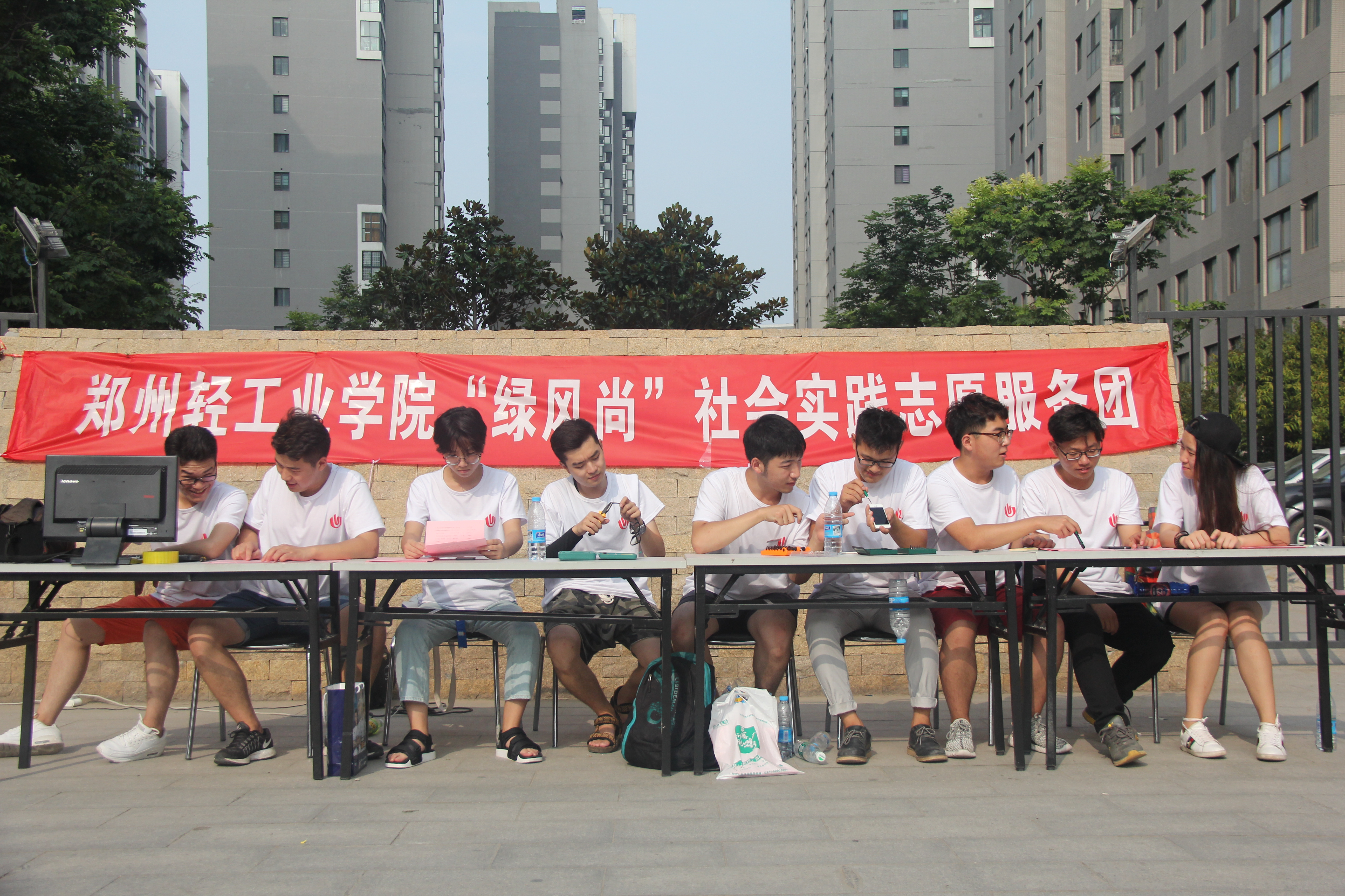 为响应共青团中央、河南团省委关于开展暑期“三下乡”大学生社会实践活动的号召,经校团委的积极组织和协调,特组织软件学院、计算机与通信工程学院、能源与动力工程学院、建筑环境工程学院这四个学院的大学生志愿者组成“绿风尚”社会实践志愿服务团于7月8日至10日前往郑州高新区开展社区志愿服务活动。