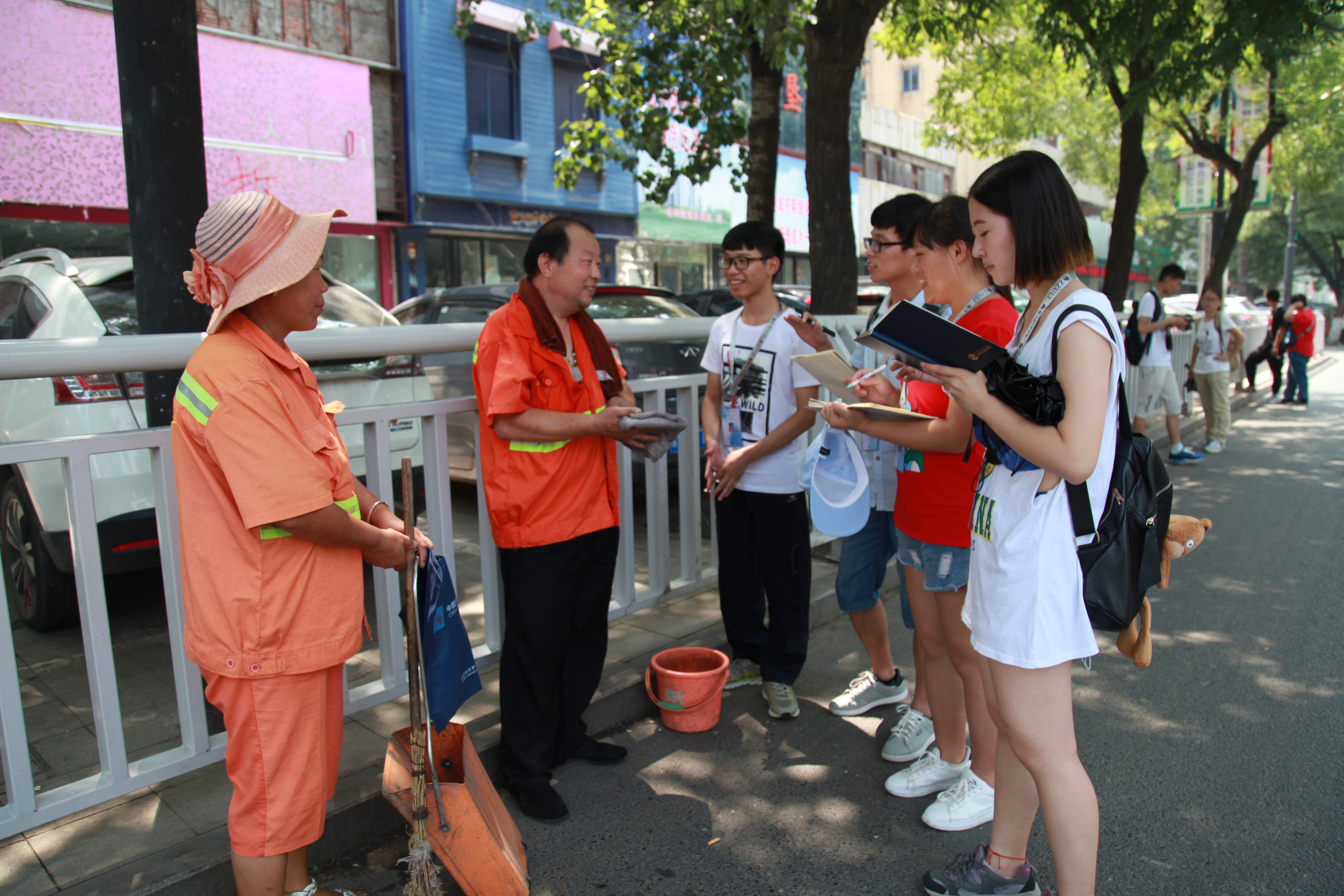 郑州轻工业学院大学生记者团到二七区采访环卫工人