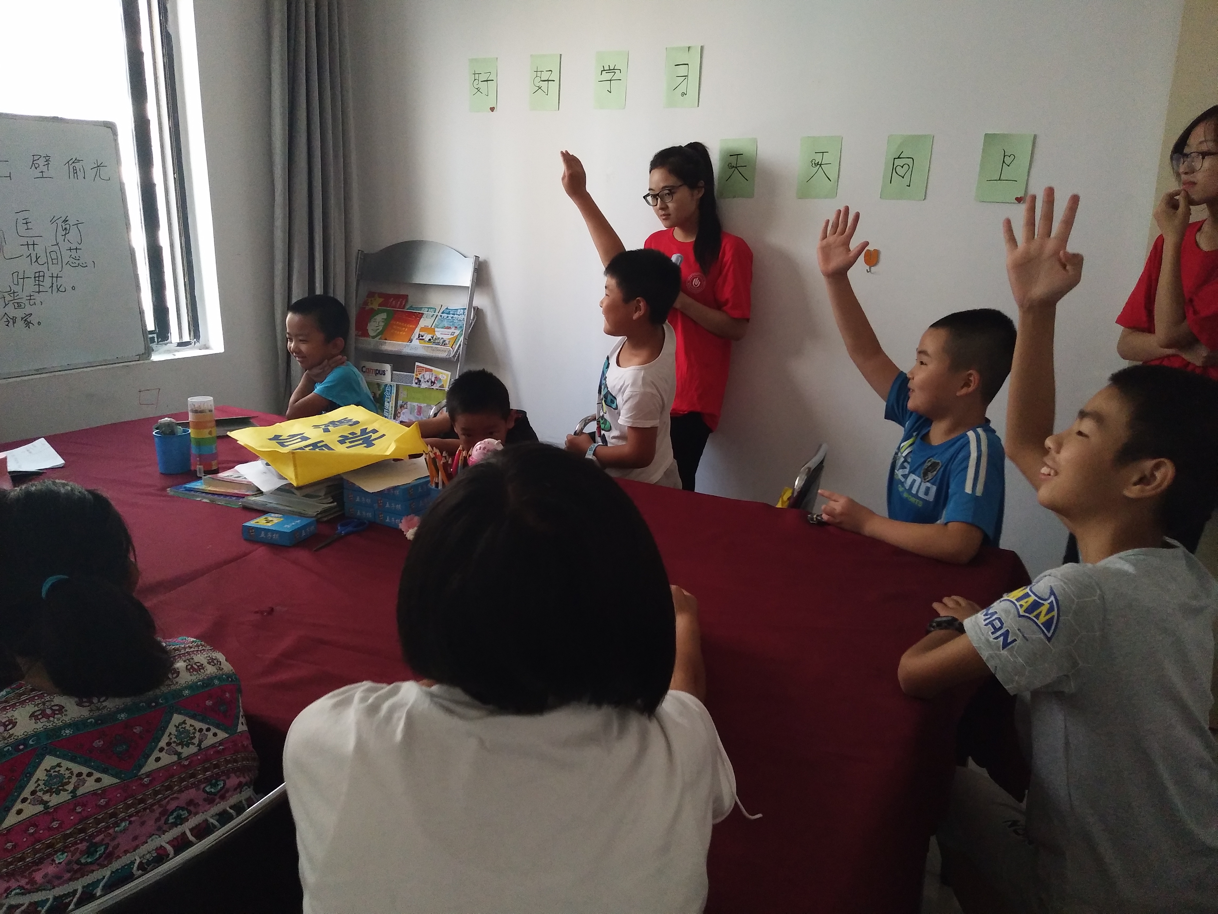 7月11日至13日,两个小分队按照计划开展活动。破冰游戏打破了队员们的距离和陌生感。队员们与孩子熟悉之后,每天的常规实践活动分为四部分:观影、读书会、读诗背诗和暑假作业的辅导。14日至15日,两个小分队分别在两个社区对孩子们进行了防溺水教育活动和普法宣讲活动。防溺水教育活动主要以PPT的形式讲解,辅助对孩子们的提问环节和身边真实事件的举例。普法宣讲活动在室内室外分别开展,在室内主要对孩子进行教育,讲解基本的法律知识,室外的宣讲活动主要针对社区居民,主要方式是依托咨询台提供法律帮助。16日,所有队员集中到万丰慧城社区,进行“寄语树”的制作和总结会议的开展,倾心社会工作服务中心的负责人也对队员们提出了合理建议。