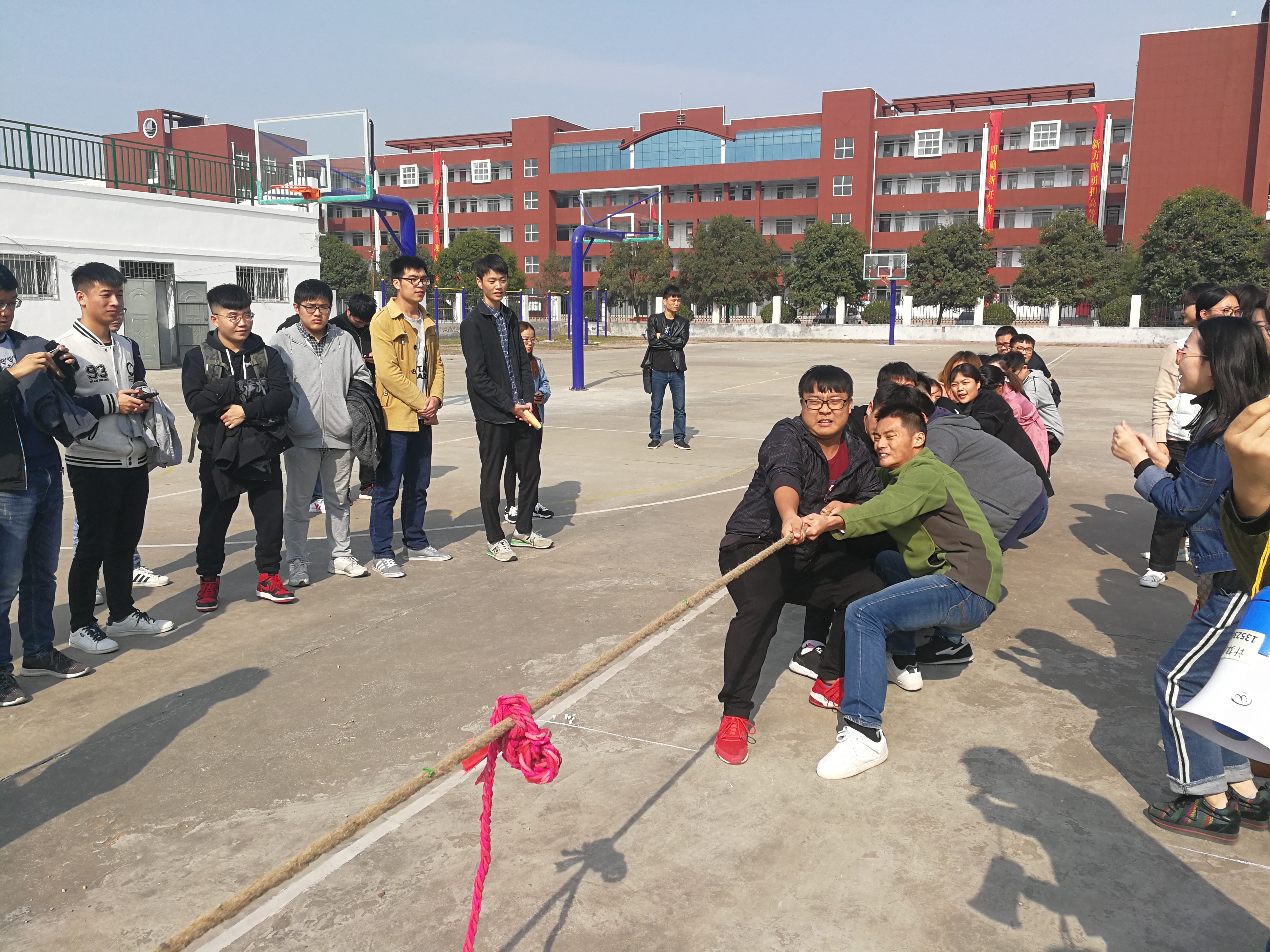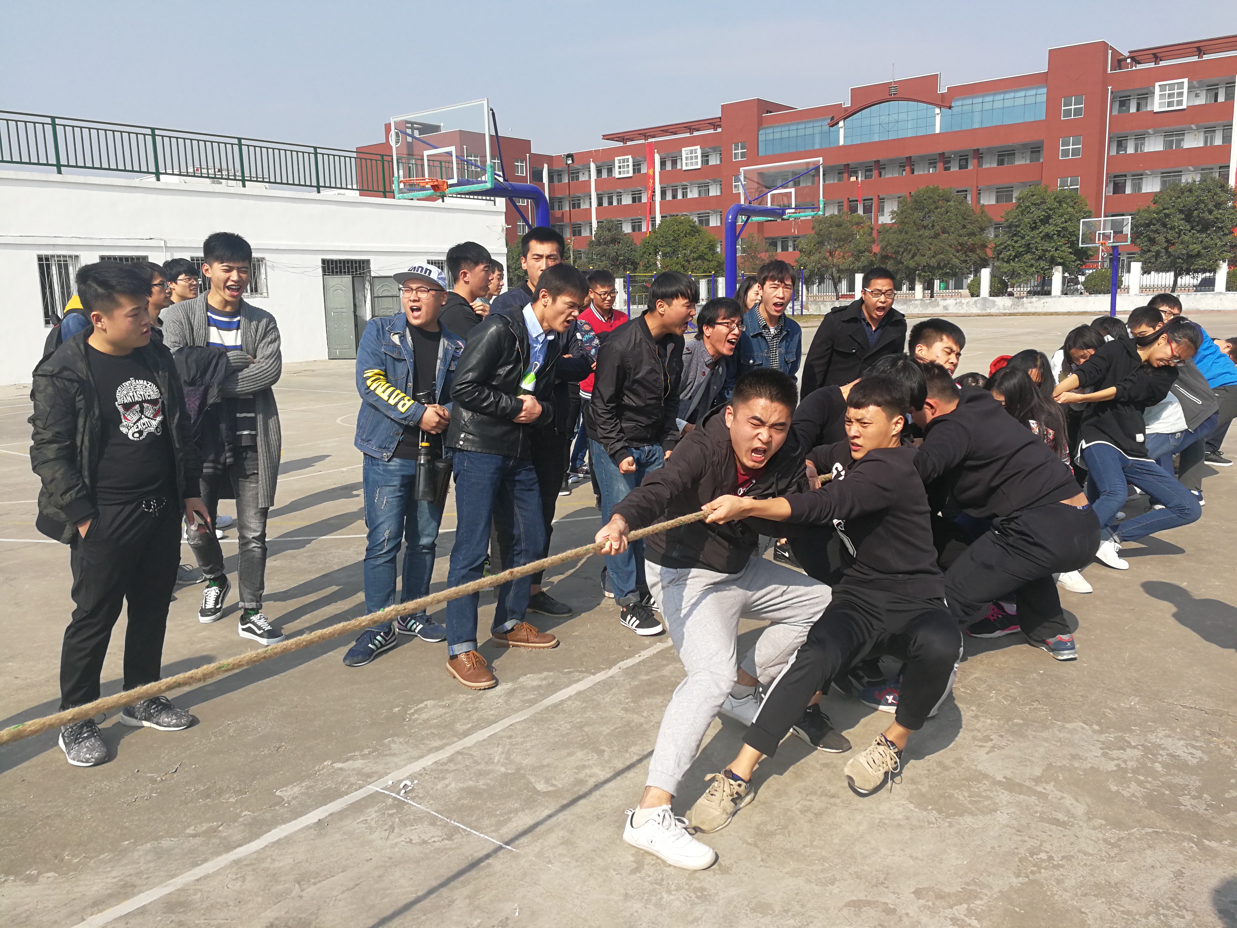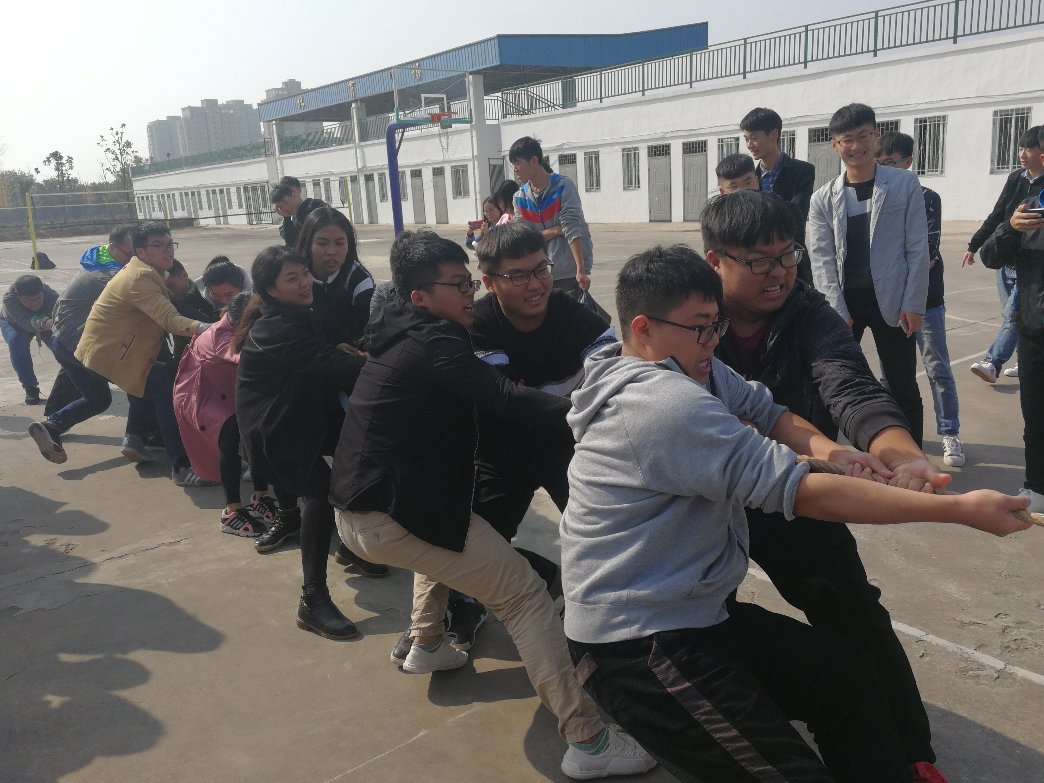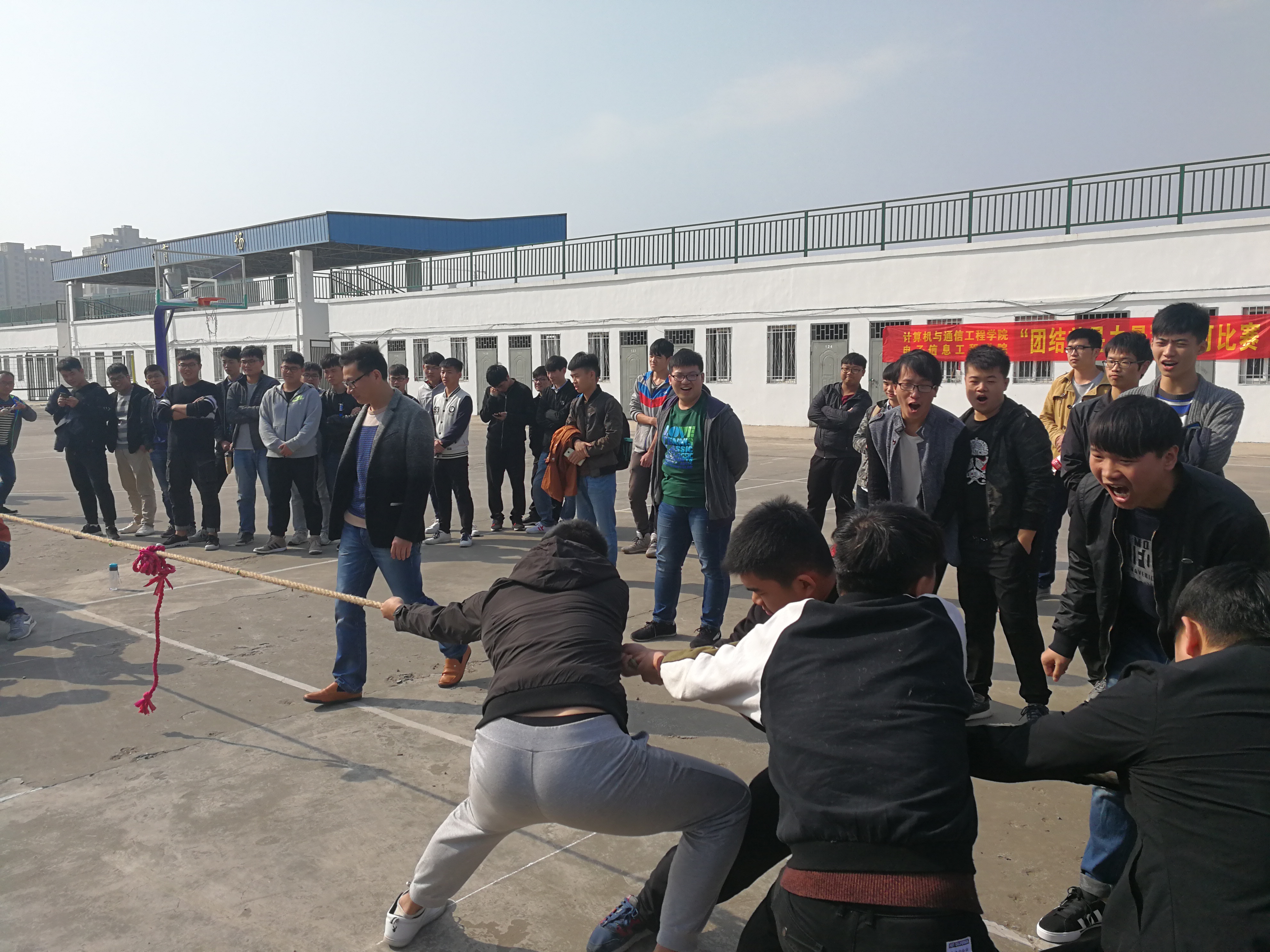 为丰富禹州实习实训基地大学生的课余生活,培养学生的团队意识和进取精神,增强学生身体素质和精神文明。2017年11月7日中午12:00,由计算机学院禹州实习实训基地团总支主办的“团结就是力量”拔河比赛在禹州实习基地篮球场上如期举行,学院全体实习实训的带队辅导员、系部教师以及学生班级参加了此次比赛。