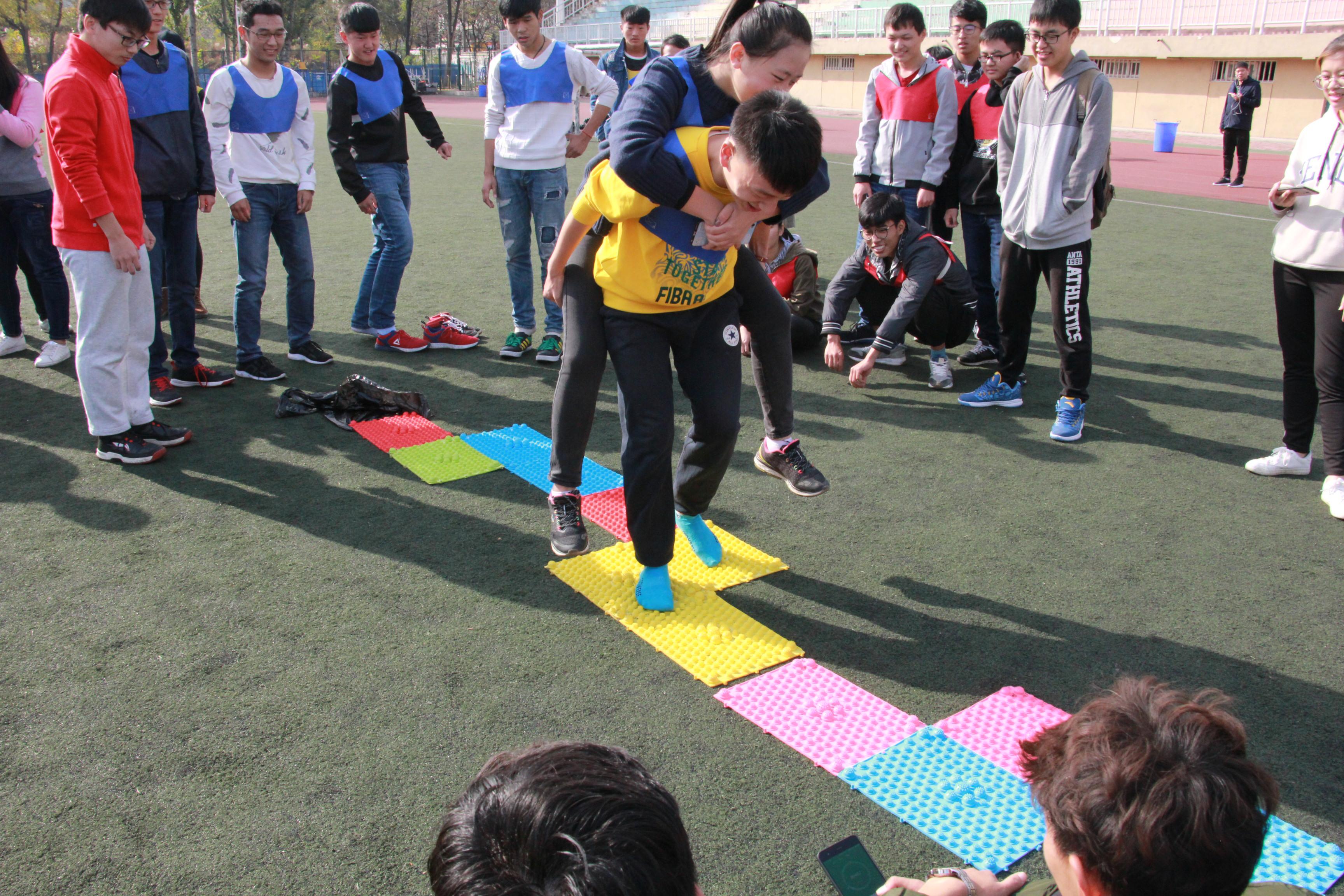 上午8:00,全体16级到场人员进行签到,副主席左文思担任本次活动的总裁判,副书记陈佳丽担任主持人。首先16级工作人员对17级成员进行部门交叉分组,共六组,以及发放名牌。由16级成员对活动规则进行介绍并亲自示范。接着,小组之间开始进行两两对决,分别展开比拼。活动共设置了“袋鼠跳”、“杯水车薪”、“指压板”、“穿越呼啦圈”、“撕名牌”、等共五个比赛项目,游戏中间还附加了友谊赛“拔河比赛”,大一大二大三全部成员齐上阵,使出全身力气,气氛顿时热火朝天,大家玩得不亦乐乎。这些游戏非常具有趣味性,但同时也很考验团队合作能力,参赛的各个小组都团结协作,出色地完成了比赛。以及拔河比赛的比拼,极其考验团队合作能力。各组人员为了完成比赛相互配合,竭尽全力。游戏的过程中充满了欢声笑语,使成员们感受到社联的家文化,更增强了社联各个部门的联系。活动结束后,社联的全体人员进行拍照留念。
