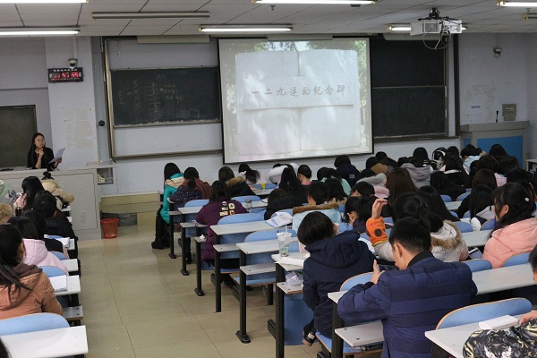 为纪念一二•九运动82周年,以实际行动深入学习贯彻党的十九大和习近平总书记系列重要讲话精神,缅怀革命先烈,弘扬爱国情怀,12月5日,外国语学院在教三楼608教室举办抗战故事大家讲活动。我院近200名学生参加活动。
