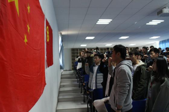 12月6日中午12:30,在教二楼230室,国际教育学院举行新团员入团宣誓仪式,国际教育学院分团委主要学生干部、17级各团支部书记及副书记以及新入团团员参加了本次活动。