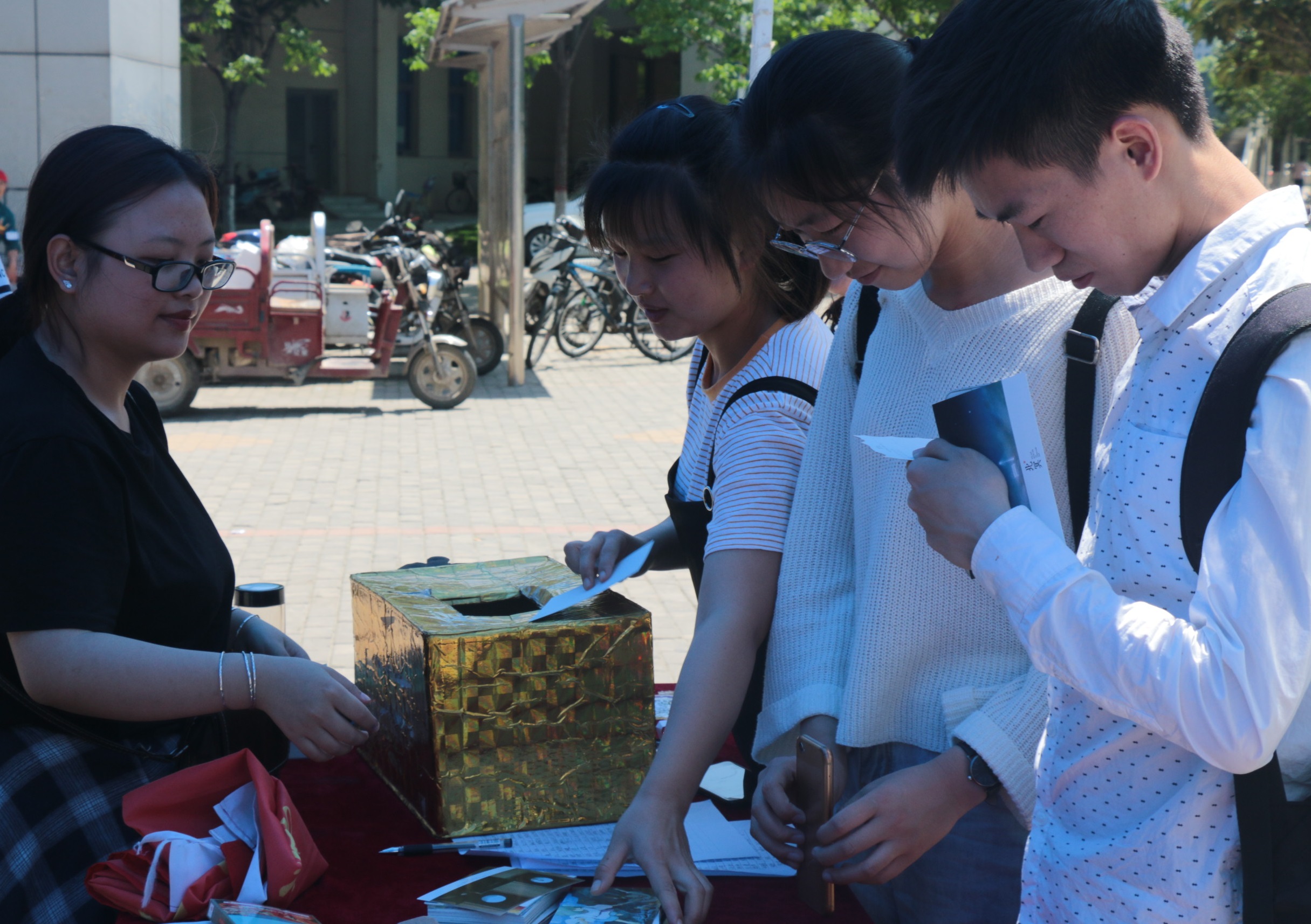 中午11:50,社联全体人员在清苑餐厅门口集合,组织线上投票及抽奖活动。本次活动采用线上投票和线下宣传板展览的形式进行。所谓线上投票,即同学们进入校团委的微信公众号为自己所喜爱的协会投票,每人可投三票,凭投票截图,在5月3日当天可至清苑餐厅门口的社联值班处进行抽奖。奖品设置十分丰厚,一等奖为USB风扇、二等奖为冰垫、三等奖为明信片。5月3日后,同学们可至活动中心楼505室进行抽奖及兑奖。活动一开始,同学们都热情高涨,积极地进行投票并抽奖,活动台前一片繁忙。线下宣传板的展览时间是5月3日至5月10日。经过各个协会的精心制作,每块宣传板都十分精致,并且宣传板上的内容也都体现着各协会的文化特色。同时,36块宣传板被整齐地摆放在经管楼北门道路的一侧,打造出一条绝美的文化长廊,同学们纷纷驻足观看,并不时发出赞叹声。下午4:00,本次活动暂时告一段落,但线下宣传板展览会持续到10号结束。在此期间,同学们仍可以通过观看宣传板的方式来了解协会办的精品活动并为自己喜欢的协会进行投票。