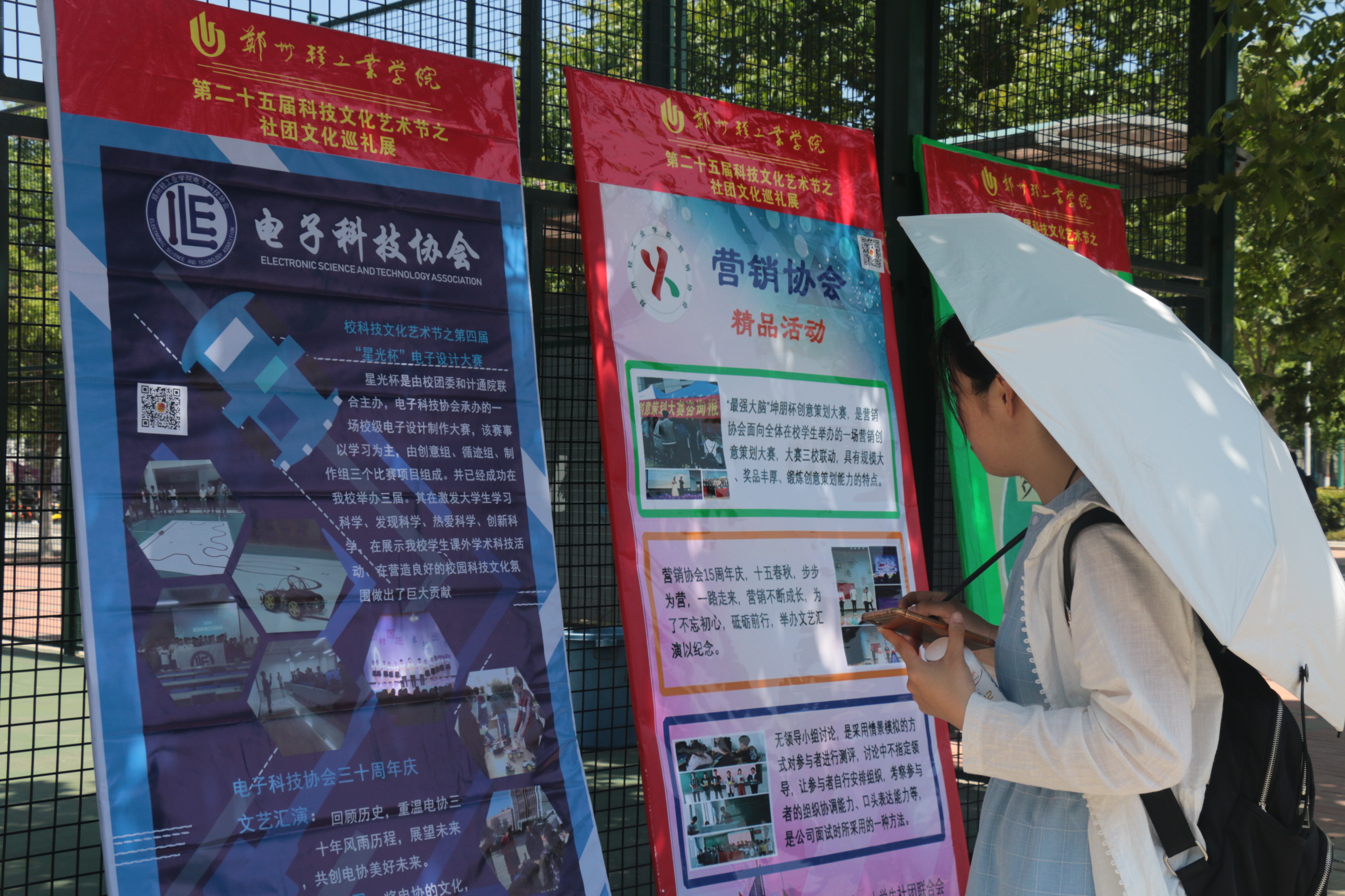 学生社团是校园文化生活中不可缺少的组织,为了弘扬社团文化,丰富同学们的课余生活,也为各社团提供展示自己的机会,5月3日,由校团委主办,大学生社团联合会承办,各协会协办的第二十五届科技文化艺术节之社团文化巡礼展在科学校区清苑餐厅前顺利举行。本次活动采用线上投票与线下宣传板展示相结合的方式,旨在促进社团文化的发展,营造出浓厚的校园文化氛围,也为同学们带来一场文化盛宴。除各社团及社联全部人员外,许多同学也参加了本次活动。