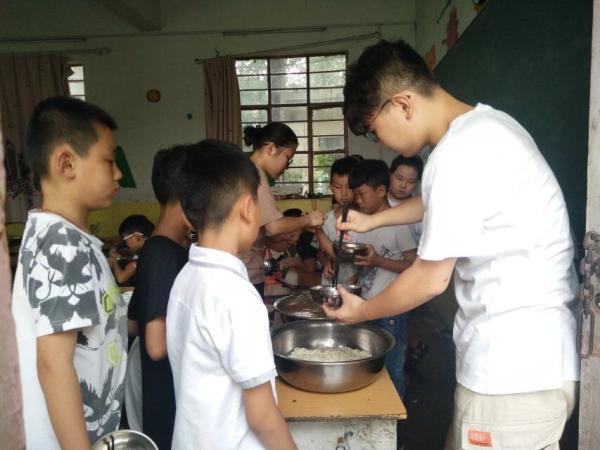 活动过程中小分队面向孩子们共开设了绘画(设计)、硬笔书法、语文、数学、英语、音乐六门科目。教学期间,队员们克服高温酷暑、蚊虫叮咬、生活不便等诸多困难,全力以赴辛勤备课。大家深入浅出、妙趣横生的授课方式,得到了孩子们的承认和喜欢,让观音堂的孩子们在快乐中接受艺术方面的熏陶。对于这些可爱的孩子们,队员们需要关注的不仅仅是他们的学习,还包括他们的生活和心理,为确保每一名孩子都能够吃饱吃好,避免烫伤等意外情况,队员们在饭点亲自为孩子们端饭盛饭,无微不至。观音堂小学的孩子大多都是留守儿童,他们需要关心,需要爱。队员们在与孩子们的交流过程中了解到了孩子们更多的情况,对待孩子们的生活和学习也更加认真负责。