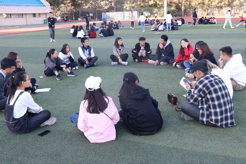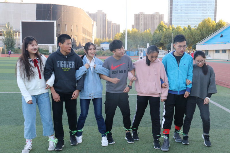 下午2:10,17级成员首先到达活动现场并进行了简要的布置,2:30,18级成员到达场地。活动开始后,首先由17、18级全体人员拍摄集体视频,为云南民族大学校团委社团部第九届民族风情文化周的开展送上美好祝福。视频拍摄完成后进入本次活动的主要环节。相应的负责人将参加人员分为不同的小组,每个小组选出一名17级成员作为小组长,之后依据小组的形式进行各项游戏。第一项游戏是叠报纸。游戏规则:将两张报纸放在地上,每张报纸上站五个人,两边各派出一个代表与对方猜拳,输掉的一边须将脚下的报纸对折后再站到上面且所有的双脚都不允许着地,直到其中一方站不上去为止。失败的一方接受惩罚。惩罚的方式多种多样,既是对体力的考验,也是对智力以及敏锐度的考验。被惩罚的人可以选择表演才艺,优美的歌声,喜感的表演也赢来了阵阵掌声,同学们都表现得十分积极。之后又进行了“大风吹”、“逢七过”等游戏。同学们在游戏过程中逐渐对彼此有了更加清晰的了解,与此同时,现场氛围也活跃起来并进入了高潮。在本次活动举办之前,许多18级新成员对其他部门的成员并不是十分的熟悉,有的甚至彼此之间从未交谈过,通过本次面对面的活动,相信他们能从中有所收获。在短暂的休息后,所有小组合并进行了“五毛一块”游戏,足球场上一片欢声笑语。不知不觉中,已经进行到了本次活动的最后一项游戏,六人七足。同学们按照部门排成一列,六个人两两把脚绑在一起,在本部门17级成员的带领和指导下,在足球场的空地进行了一段时间的练习,从一开始的歪歪扭扭到后来变得协调有序,形成默契。比赛开始,所有队伍都十分团结,喊着整齐有力的口号,顺利地走过了终点。无论比赛结果如何,每个人脸上都洋溢着满足的笑容。本次素质拓展活动到此时圆满结束。