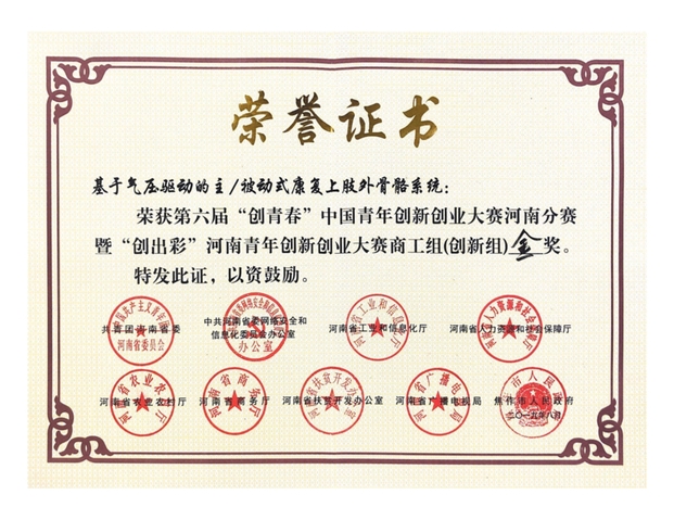 本届大赛由团省委、省委网信办、省工信厅、省人力资源社会保障厅、省农业农村厅、省商务厅、省扶贫办、省广播电视局和焦作市人民政府主办,采用整体赛制,面向全省创业青年,以网上报名的形式参赛,设商工组、农业农村组、互联网组3个类别。大赛启动以来我校广泛宣传,积极组织报名参赛,经资格审查、初赛,来自机电工程学院等6个学院的8个项目脱颖而出入围决赛。决赛采取5分钟项目路演+3分钟评委提问的模式进行,各参赛项目从项目背景分析、产品服务、市场前景、营销策略、财务运营、风险管理、团队素质、社会效益等方面进行了展示,并就评委提出的创业计划书的可行性、资金分配、竞争优势等方面的问题进行了精彩解答。经过激烈角逐来自机电工程学院的《基于气压式驱动的主/被动式康复上肢外骨骼系统》获得金奖,来自能源与动力工程学院的《多功能基站式太阳能智能集水储能装置》获得铜奖。