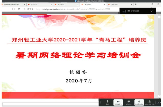 近日,我校2020-2021学年“青马工程”培养班在钉钉会议平台召开会议,对暑期青马班网络理论学习进行了详细的安排部署,正式拉开了“青马工程”网络理论学习培训的序幕。