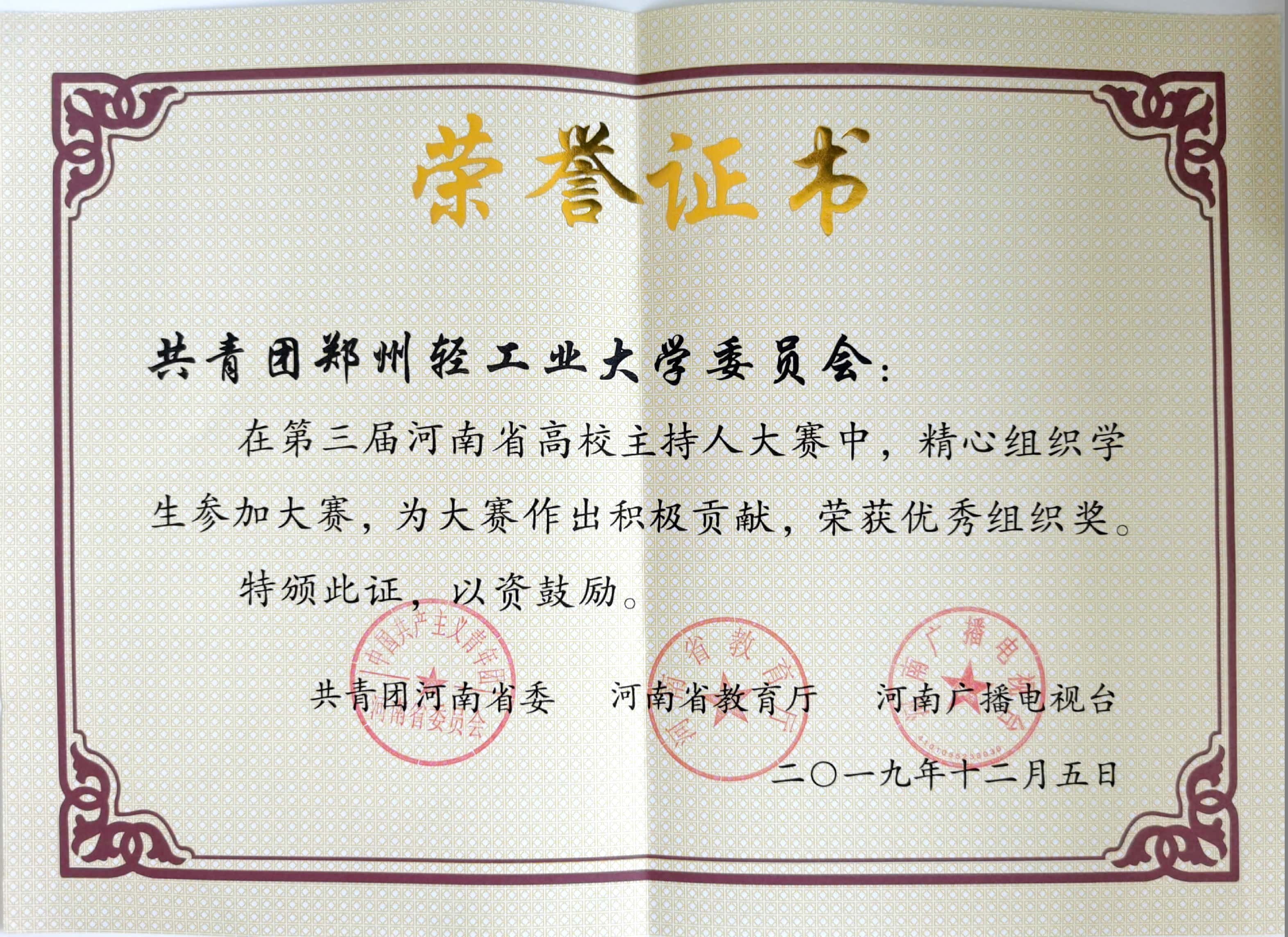 近日,由共青团河南省委、河南省教育厅、河南广播电视台联合举办的第三届河南省高校主持人大赛结果揭晓,学校共选拔五名选手参加了该项竞赛活动,经过初赛和复赛的激烈角逐,我校荣获优秀组织奖。
