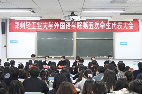10月15日下午,18新利直播 外国语学院第五次学生代表大会在教三楼104教室成功召开。学院党委副书记马宇、团委书记矫菲、学工办主任张文卿、校学生会主席团代表张丽君及全体学生代表参加会议。