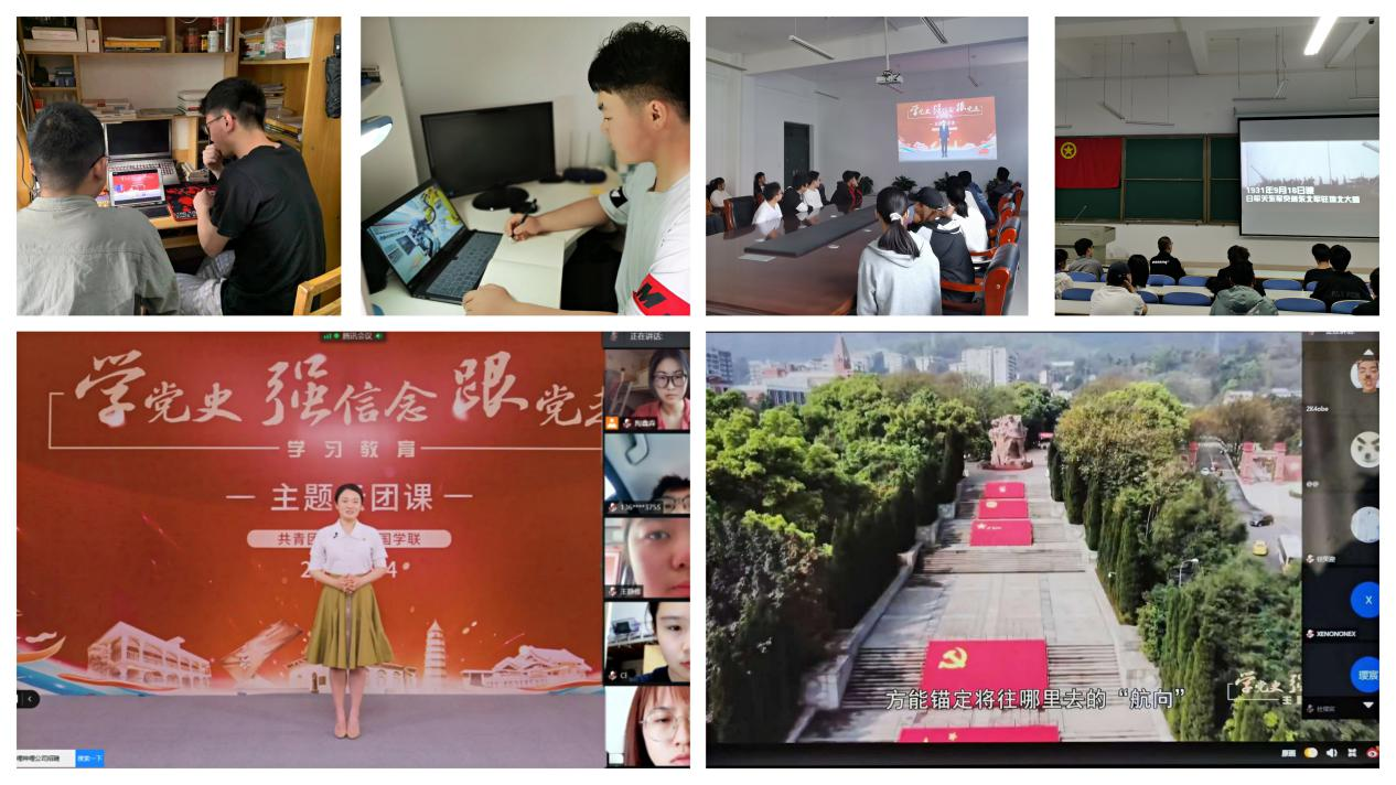 围绕党史学习教育主线,由软件学院和艺术设计学院开展“学党史做表率,强信念跟党走”迎接建党100周年示范主题团日活动暨2021年度新发展团员入团仪式,进一步激励我校团员热爱伟大祖国、担当时代责任、勇于砥砺奋进;由外国语学院策划、拍摄并制作的舞台剧《烈火中永生》于5月3日在全省“立大志 明大德 成大才 担大任”五四主题活动中“旗帜篇”进行展播,鼓励广大青年朋友讲好红色故事,传承红色基因。学校率先开展百名学生诵读百余封红色家书“我把红色家书读给你听”主题学习活动,目前在微信公众平台已推送15期,进一步将党史学习教育成果内化于心、外化于行。