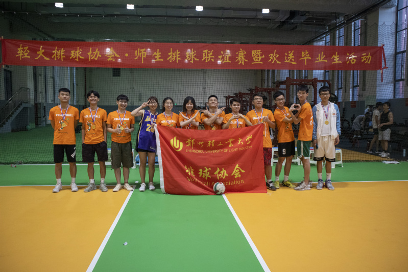 本次活动由学生排协会会长符洪玮同学主持,主要分为两大部分:游戏和师生联谊友谊赛。下午15:30,活动正式开始。首先是趣味游戏部分——凳子排球,分别由大二的同学和大四的同学组成的两支队伍进行趣味了比赛。哨声一落,大家都全力以赴的开始接、传、垫高,组织进攻,为团队争分。运动员集中积极得分,赛场上充满了欢声笑语。场下的同学们也都全神贯注关注比赛,为上场的同学们加油打气。16:30,师生联谊友谊赛准时展开,本次友谊赛分为男女两队,学生队参赛队员以大四同学为主。精神饱满的老师和同学们早早来到排球场进行热身活动。教师和同学们也自发组成拉拉队为教师和同学们加油助威。随着比赛的进行,场上的各队运动员渐入佳境,奋力击球;场下,拉拉队们加油呐喊,热情洋溢。比赛最终打满了三局,最后教职工排球女队和毕业生男队分别获得联谊赛的胜利。随后,教职工排球协会会长张凯老师代表校工会教职工排协向即将毕业的毕业生排球队员赠送刻有轻大校训的纪念奖牌并合影留念。