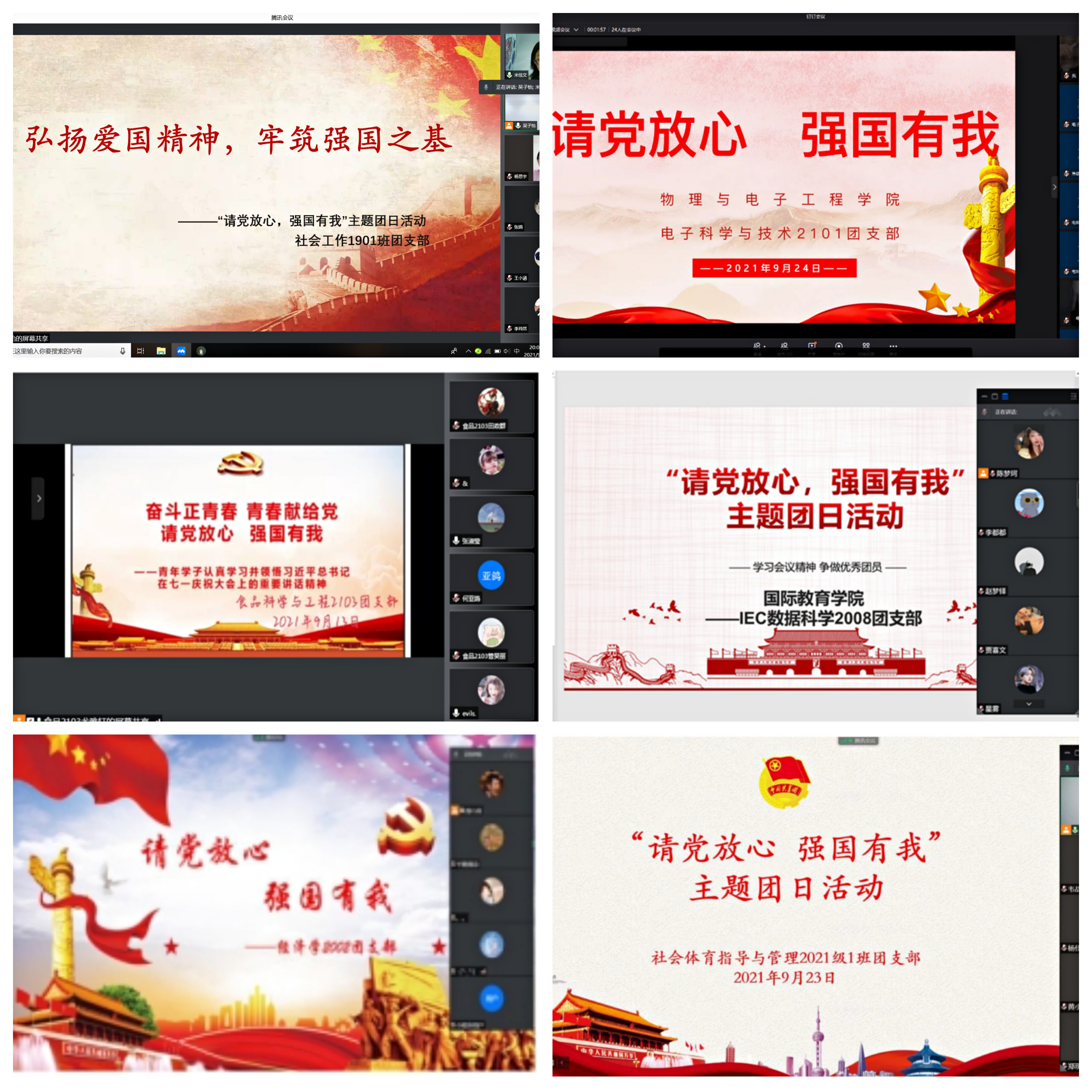 为持续深入掀起学习宣传贯彻习近平总书记七一重要讲话精神的热潮,进一步拓展全校各级团组织深入开展“学党史、强信念、跟党走”学习教育的深度和广度,切实加强对广大团员青年的思想政治引领,永远听党话、感党恩、跟党走,结合疫情防控和学生学习实际,8月—9月,学校各基层团组织开展了“请党放心,强国有我”主题团日活动。