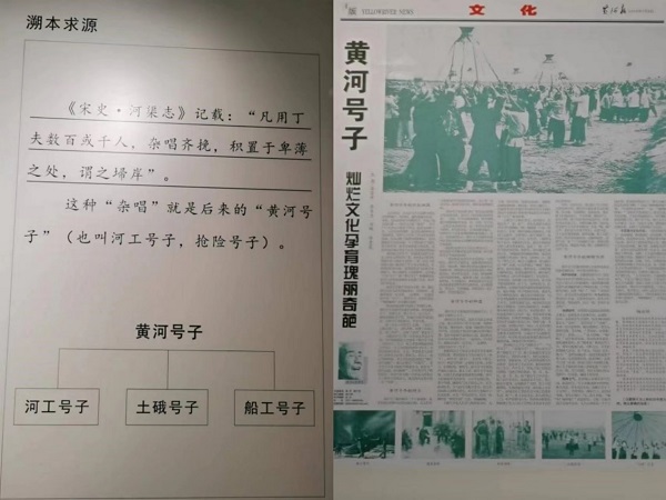 位于郑州市的队员前往了黄河博物馆进行调研,通过博物馆展示的文化历史资料全面、多角度地了解了黄河文化的发展历史、文化遗产与其当代价值所在。在参观博物馆的过程中,队员们了解了黄河文化前后约两千年的文化历史。其中历朝历代都十分重视对黄河资源的开发与利用,如“黄河号子”此类国家非物质文化遗产,便是千百年来黄河儿女在与黄河互动过程中形成的曲调,是极具地方特色的民间音乐形态,也是黄河文明孕育出的特有瑰宝。同时,队员们也了解到,在人民群众探索与开发黄河资源的历史过程中,治水问题始终备受关注。正确处理好人与黄河之间的生态平衡问题,是黄河文化得以发展至今的重要条件。而前人所留下的黄河治理历史资料,为后人在黄河治理与生态发展方面提供了宝贵经验。