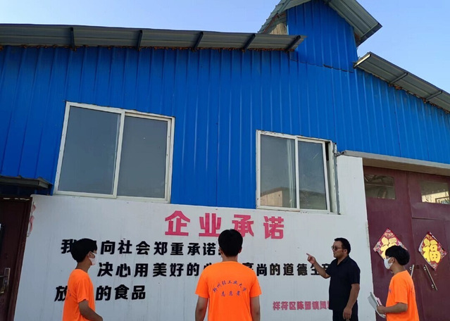 乡村振兴,产业兴旺是重点。实践团在村干部的带领下走进了位于沈楼村北的凤城食品厂,学习乡村振兴中的产业模式。风城食品厂作为沈楼村的特色产业,主要经营陈留豆腐棍的加工销售。陈留豆腐棍是开封市陈留镇独具一格的传统名产,作为古代向皇帝朝贡的佳品,更是陈留镇餐桌上必不可少的美食。团队队员们走进厂中,深入了解豆腐棍的生产流程,真切地感知乡村振兴产业的不易。