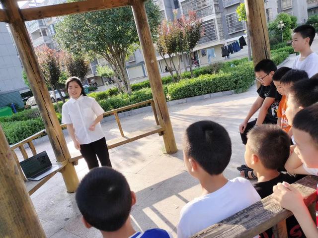 7月2日,实践队员在河南省南阳市浙川县荆紫关镇开展“以史为鉴,以史育人”党史宣讲教育活动。实践队员以“小兵张嘎”、“小萝卜头”、“小交通员潘东子”三位小英雄的典型事迹为引子,向儿童讲述党史故事。不同于生硬的道理与乏味的讲解,宣讲期间队员与儿童频繁互动,激发孩子们的积极性。