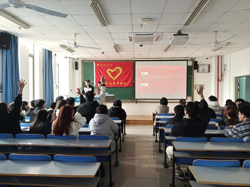 在活动开始之前,各部门进行明确的分工与合作,做好准备工作。当日下午两点二十左右,各部门副部和理事们到达二教楼708室,青年志愿者协会雷锋月主题团日活动正式开始。活动伊始,由两位主持人带领成员们观看雷锋同志简介的视频。紧接着,成员们发言叙述雷锋同志的语录,各成员积极举手参与其中。活动进行第二项,通过观看雷锋同志的事迹影片来回答幻灯片上的问题。本次回答问题采取抢答的形式,各部门成员都踊跃参与回答问题。随后,回答正确的成员们都上台领取了心仪的奖品。活动最后,青年志愿者协会全体成员合影留念,清理会场后有序离场。本次活动顺利举行,活动过程中反响热烈。