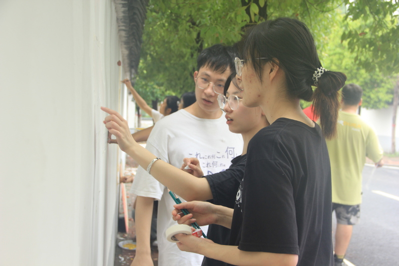 本次墙绘内容以打造美丽乡村、宣传乡村振兴战略以及反映农民辛苦劳作的艺术剪影为主,总绘制墙体面积达160余平米。在绘制过程中,为了打造出优秀作品,同学们克服了大雨和高温等困难,精心构思,反复讨论方案。他们夜间忍受蚊虫叮咬,利用投影设备勾画轮廓;白天则头顶烈日为墙体上色。经过数天努力,多彩的画面和生动的形象跃然于墙上。