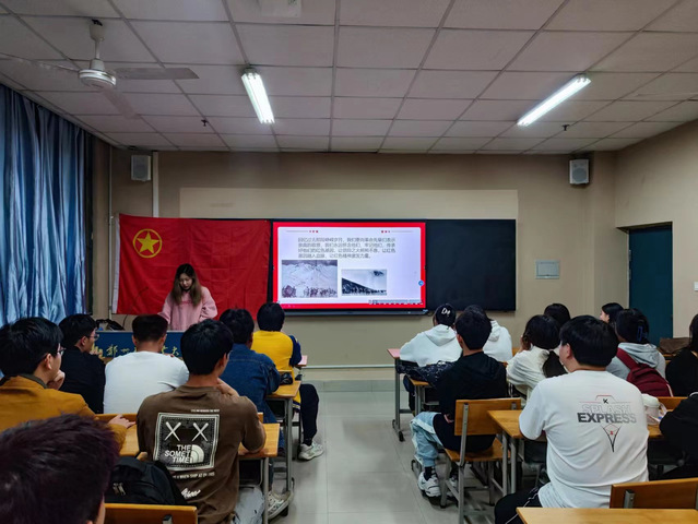 在团日活动开展的过程中,团支书讲述了红色故事,激励学生传承红色革命基因。团员观看视频,重温战争年代的峥嵘岁月,感受着革命先辈坚定的信仰,增强了民族自豪感,培养了爱国主义精神。随后,团支书通过PPT宣讲,介绍了爱国主义的内涵、意义和如何去爱国,使同学们更加深入地了解到爱国的深层含义,感受到中华传统文化的魅力,增强了文化自信,懂得如何去理性爱国。活动尾声,同学们爱国热情高涨,纷纷表示要继续传承和发扬党的优良传统,以更加积极的态度、更加务实的作风,肩负起时代赋予的光荣使命,为中华民族的伟大复兴任务添砖加瓦。