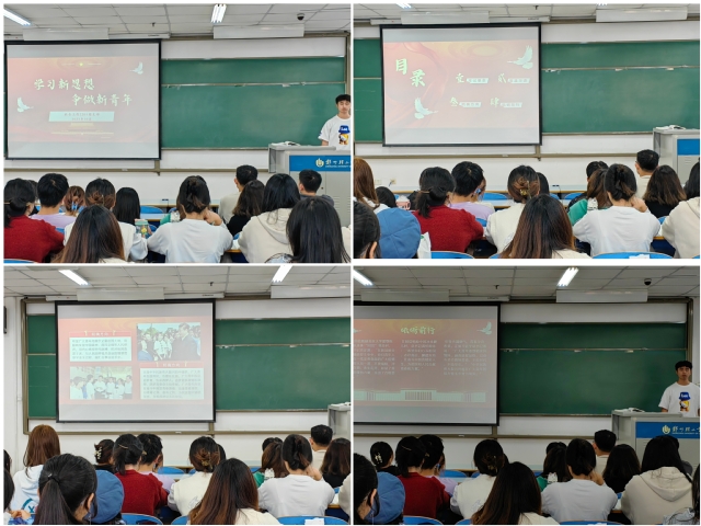 团日活动中,团支书从“牢记使命”“重温习语”“明确方向”“砥砺前行”四个方面,带领团支部成员共同学习了习近平总书记关于青年工作的重要思想内容,共同观看了《习近平与大学生朋友们》系列采访实录中的部分内容。在活动中,支部团员们深刻领悟到了习近平总书记对于青年人的谆谆教诲和殷切期盼,认识到了青年大学生所肩负的时代使命,立志要在今后的学习生活中做到不负青春,不负韶华,彰显青春蓬勃力量,把青春汗水挥洒在新时代建设征程中去。