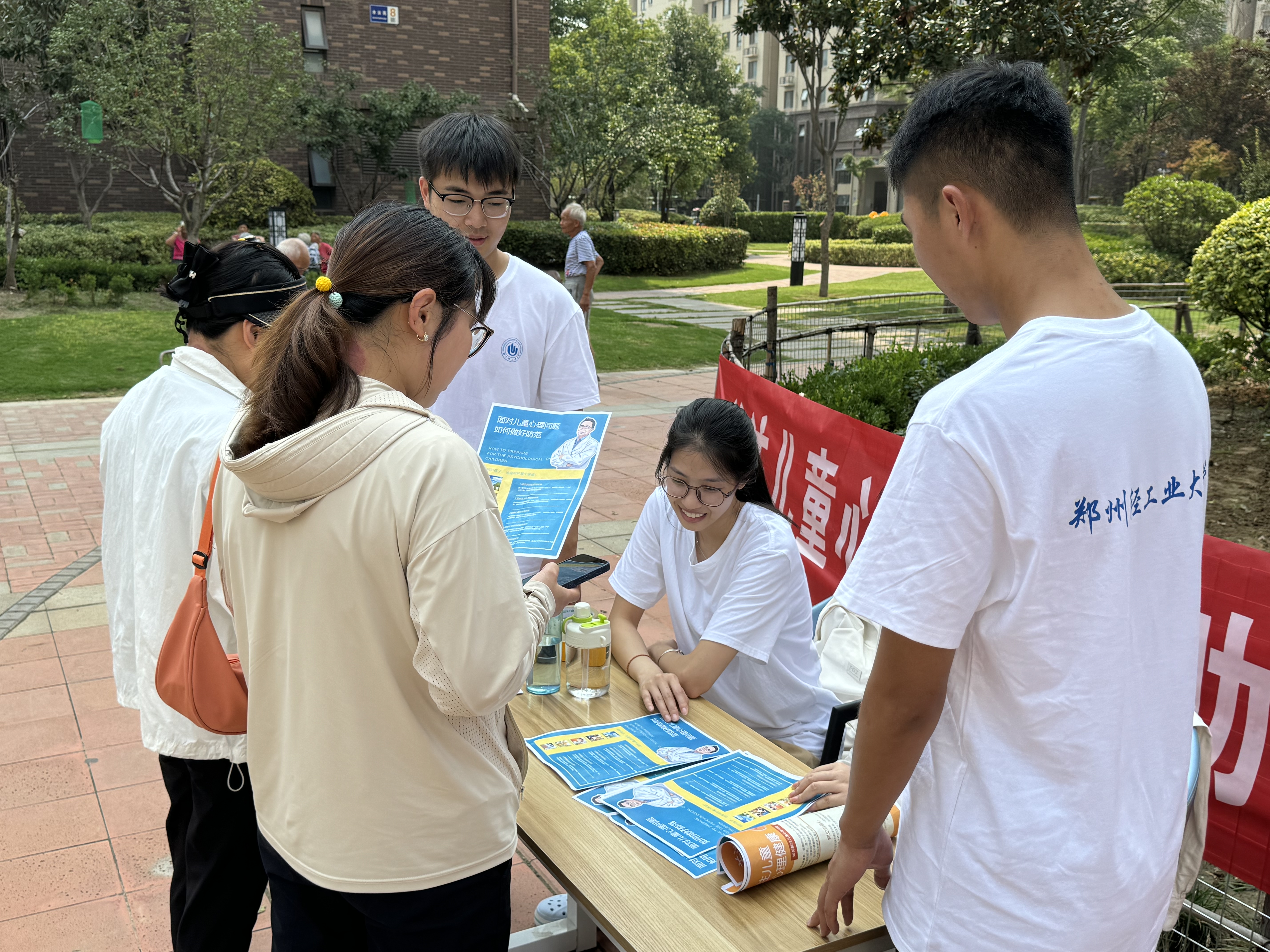 活动伊始,实践团队的宣传摊位便吸引了众多路过的家长与孩子,实践成员以通俗易懂的语言,向居民分享精心挑选的真实案例,详细且全面地介绍儿童心理健康的重要性。这些案例犹如一面面镜子,清晰地映照出心理健康问题可能给孩子带来的影响。居民们在聆听过程中,深刻地认识到了心理健康的重要性。通过成员们的细心科普与耐心回答,家长们逐渐起了重视孩子的心理健康问题,并且对保护孩子的心理健康有了更加科学、更加全面的认识,如建立良好的家庭环境与孩子进行有趣的游戏、生动的故事和精彩的表演;从家庭环境中获取安全感有助于减轻孩子压力,增加亲密指数;通过运动让孩子充分发泄自己的负面情绪、提高积极感受、克服坏心情,建立沟通能力以及团队协作能力等。通过此次活动,家长和孩子们不仅增长了心理健康知识,还了解了自我保护的方法。